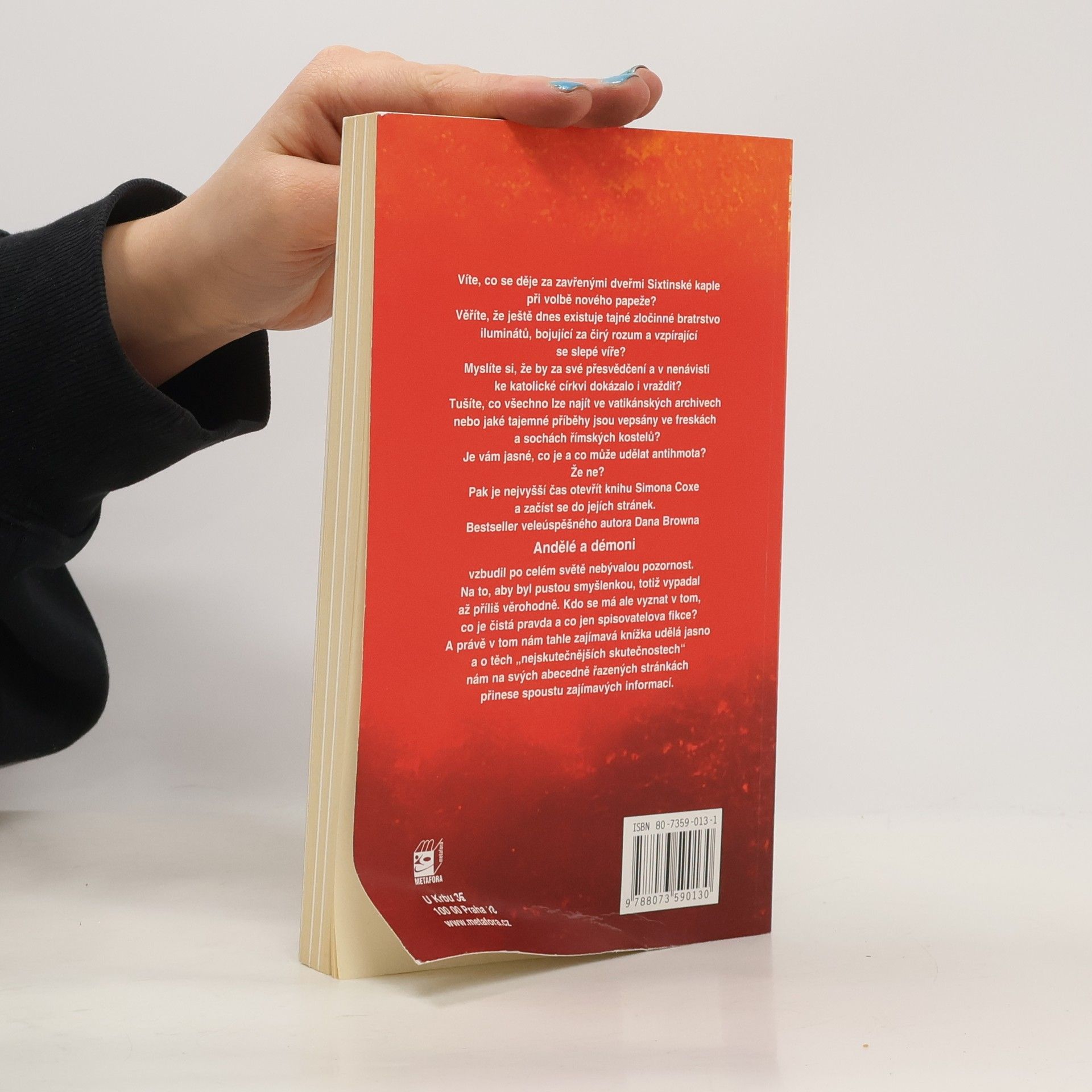 Podnětná „miniencyklopedie“ zahrnující všechny zajímavé věci, o nichž padla zmínka ve světovém bestselleru Dana Browna Andělé a démoni. Věříte, že ještě dnes existuje prastaré bratrstvo iluminátů, bojující za čirý rozum a vzpírající se slepé víře? Myslíte si, že by za své přesvědčení a v nenávisti ke katolické církvi dokázalo i vraždit? Víte, co lze najít ve vatikánských archivech, nebo jaké tajemné příběhy jsou vepsány ve freskách a sochách římských kostelů? Je vám jasné, co je a co může udělat antihmota? Že nevíte? Pak je nejvyšší čas otevřít knihu Simona Coxe a začíst se do jejích stránek. Bestseller veleúspěšného autora Dana Browna Andělé a démoni vzbudil po celém světě nebývalou pozornost. Na to, aby byl pustou smyšlenkou, totiž vypadal až příliš věrohodně. Kdo se má ale vyznat v tom, co je čistá pravda a co jen spisovatelova fikce? A právě v tom nám tahle zajímavá knížka udělá jasno a o těch „nejskutečnějších skutečnostech“ nám na svých abecedně řazených stránkách přinese spoustu zajímavých informací.... celý text