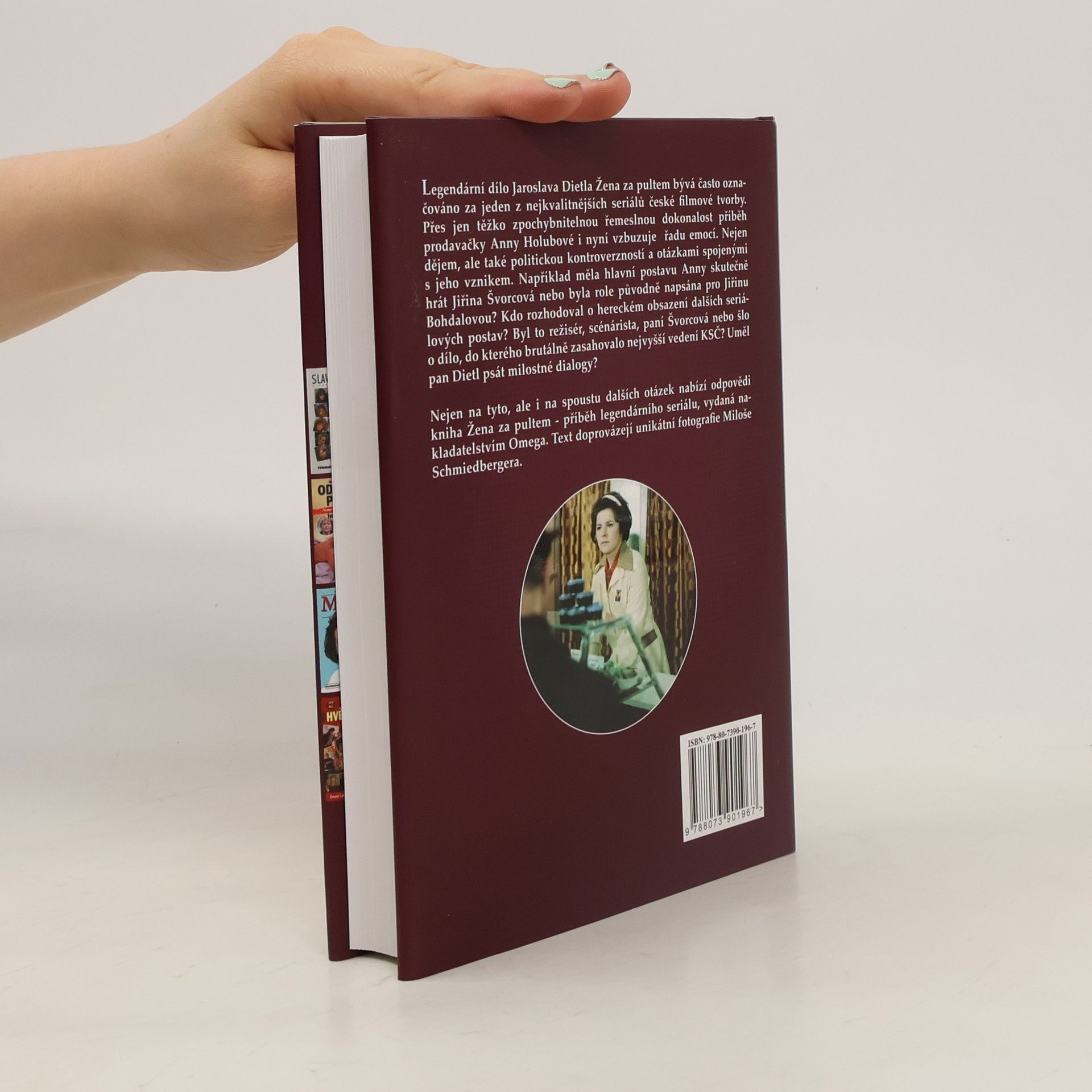 Podtitul: Příběh legendárního seriálu a jeho hrdinů Do zákulisí Ženy za pultem nahlédne nová kniha. Žena za pultem Jaroslava Dietla bývá označována za jeden z nejkvalitnějších seriálů české filmové tvorby. Příběh prodavačky Anny Holubové i nyní vzbuzuje v řadu emocí. Nejen dějem, ale také politickou kontroverzností a otázkami spojenými s jeho vznikem. Například, měla hlavní postavu Anny skutečně hrát Jiřina Švorcová, nebo byla role původně napsána pro Jiřinu Bohdalovou? Kdo rozhodoval o hereckém obsazení dalších seriálových postav? Byl to režisér, scenárista, Jiřina Švorcová, nebo šlo o dílo, do kterého brutálně zasahovalo nejvyšší vedení KSČ? Uměl pan Dietl psát milostné dialogy? I na spoustu dalších otázek nabízí odpovědi kniha Žena za pultem - příběh legendárního seriálu, vydaná nakladatelstvím Omega. Text doprovázejí unikátní fotografie Miloše Schmiedbergera.