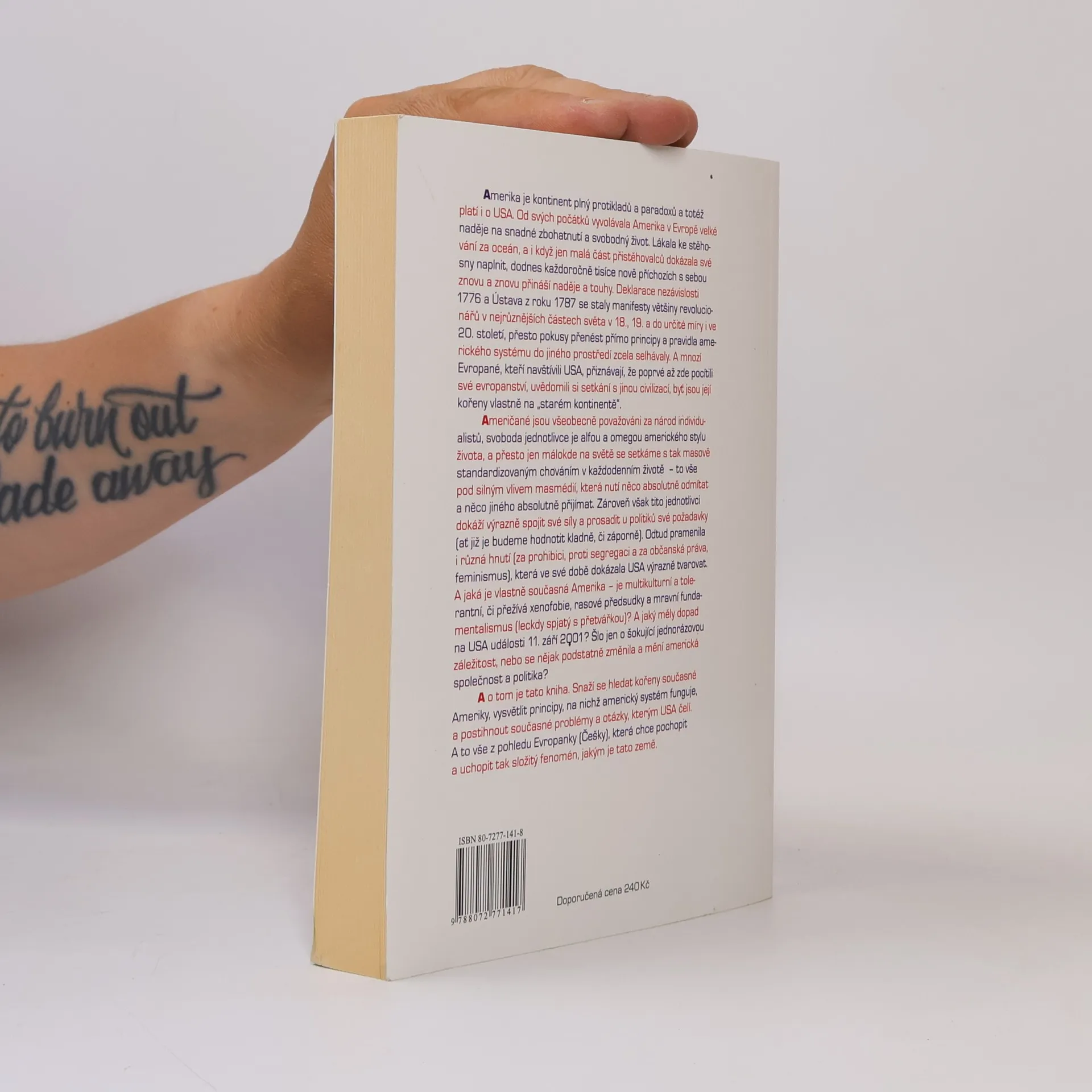 Amerika je kontinent plný protikladů a paradoxů, což platí i pro USA. Od svých počátků vyvolávala velké naděje na zbohatnutí a svobodný život. I když jen malá část přistěhovalců naplnila své sny, každoročně přicházejí tisíce nových, nesoucí si naděje a touhy. Deklarace nezávislosti a Ústava se staly manifesty pro revolucionáře po celém světě, avšak přenést principy amerického systému do jiného prostředí se ukázalo jako neúspěšné. Mnozí Evropané, kteří navštívili USA, si uvědomili své evropanství a setkání s jinou civilizací, jejíž kořeny sahají do Evropy. Američané jsou považováni za individualisty, kde svoboda jednotlivce je klíčová, přesto se zde setkáváme s masově standardizovaným chováním, ovlivněným masmédii. Tyto jednotlivce však spojuje schopnost prosazovat své požadavky u politiků, což vedlo k významným hnutím, jako je feminismus či hnutí za občanská práva. Současná Amerika je otázkou multikulturalismu a tolerance versus xenofobie a rasových předsudků. Jaký dopad měly události 11. září 2001 na americkou společnost a politiku? Kniha se snaží hledat kořeny současné Ameriky, vysvětlit principy amerického systému a analyzovat problémy, kterým USA čelí, z pohledu Evropanky, která se snaží pochopit tento složitý fenomén.