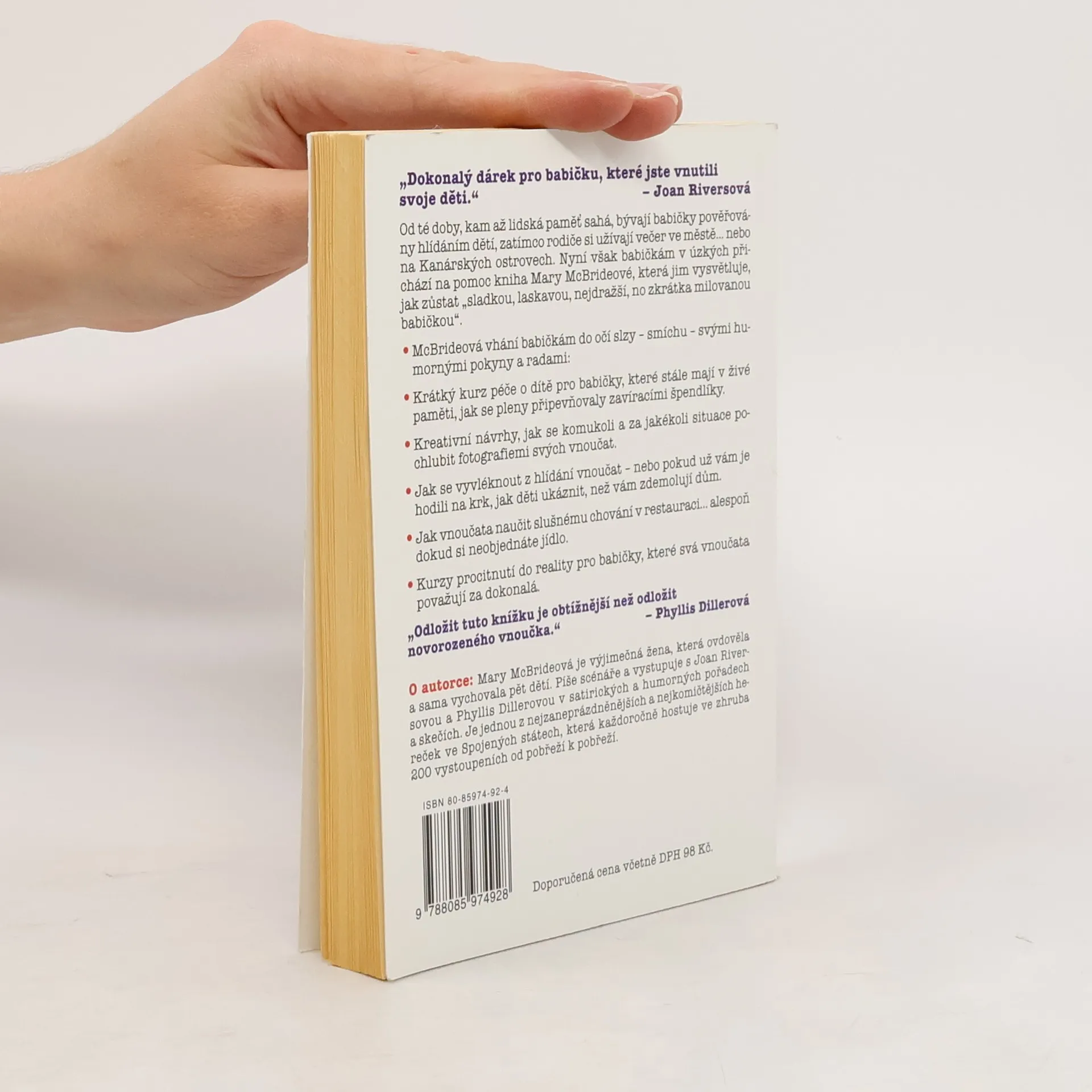 Od té doby, kam až lidská paměť sahá, bývají babičky pověřovány hlídáním dětí, zatímco rodiče si užívají večer ve městě... nebo na Kanárských ostrovech. Nyní však babičkám v úzkých přichází na pomoc kniha Mary McBrideové, která jim vysvětluje, jak zůstat "sladkou, laskavou, nejdražší, no zkrátka milovanou babičkou".