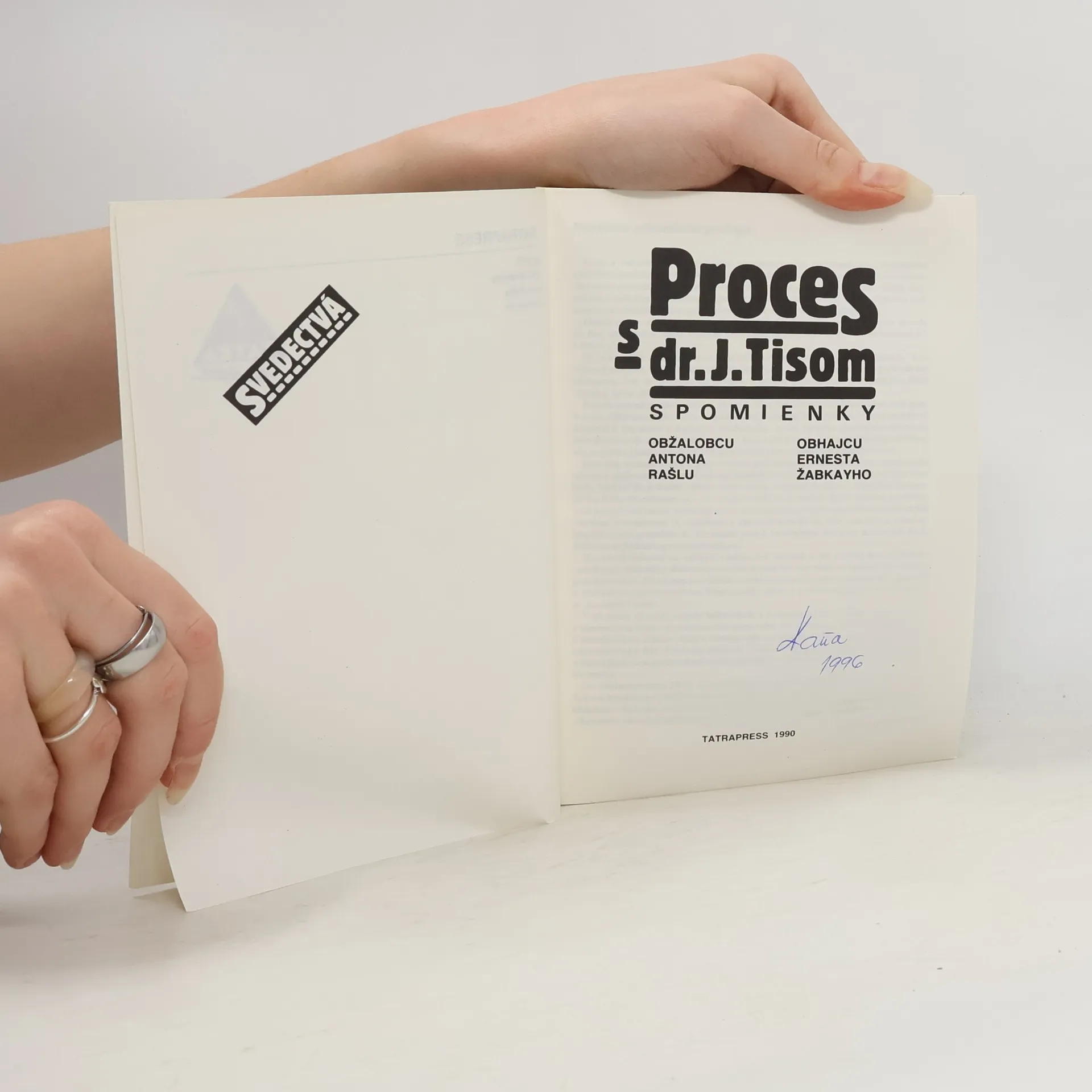 Prvý knižný titul novozriadeného vydavateľstva Slovenského syndikátu novinárov Tatrapress. Titul ešte nebol na svete a už vzbudil rozruch. Opatrníci naznačovali, že téma je veľmi háklivá, najmä po afére, ktorá vznikla v súvislosti s odhalením pamätnej tabule v Bánovciach na Bebravou. Výhrady boli najmä voči publikovaniu spomienok obhajcu JUDr. Ernesta Žabkayho. Mnohí okolo nás akoci nechceli pochopiť, že do nášho života vstúpila pravda a s ňou objektivita. Ak si chceme vážiť svoje dejiny, nemali by sme obchádzať ani háklivé témy.