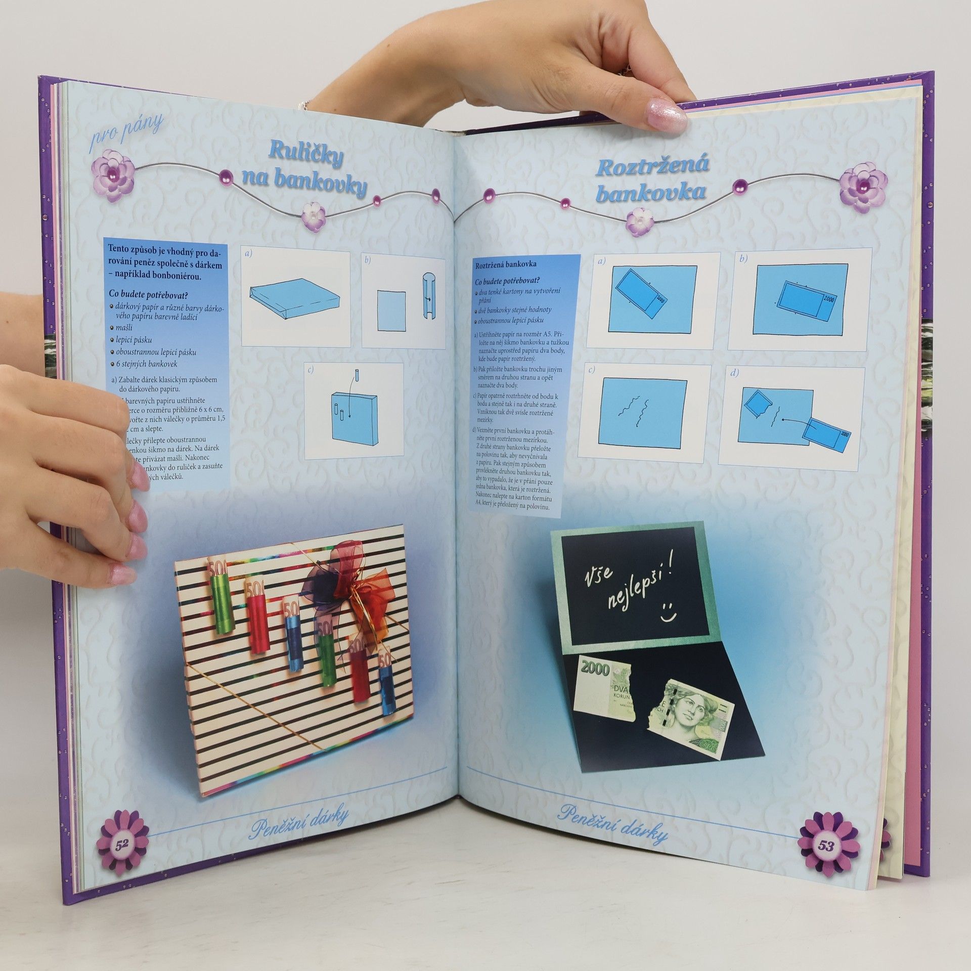 Podle rozkreslených návodů můžete například zabalit láhev pro muže jako Formuli 1, ponožky proměnit v lahodné sushi, vyrobíte například krabičku, která vypadá jako žabka či více krabiček dohromady, které si obdarovaný může splést s pravou bonboniérou. Pokud chcete darovat peníze, můžete bankovky poskládat do různých tvarů - například hvězdice nebo kostky nebo věnovat roztrženou bankovku, která na první pohled může obdarovaného trochu vylekat, ale při podrobnějším prozkoumání zjistí, že se jedná pouze o žert. V kapitole věnované mašlím, ozdobám a květinám najdete mnoho nových nápadů na výrobu květin z papíru, ale i netradiční ozdoby jako například vyřezávaná písmenka v kruhu. V poslední části najdete návody a nápady, jak vyrobit přání a obálky - například 3D přání, přání z ručních papírů, vtipná přáníčka, která vypadají jako sušenky a mnoho dalších netradičních a vtipných nápadů.