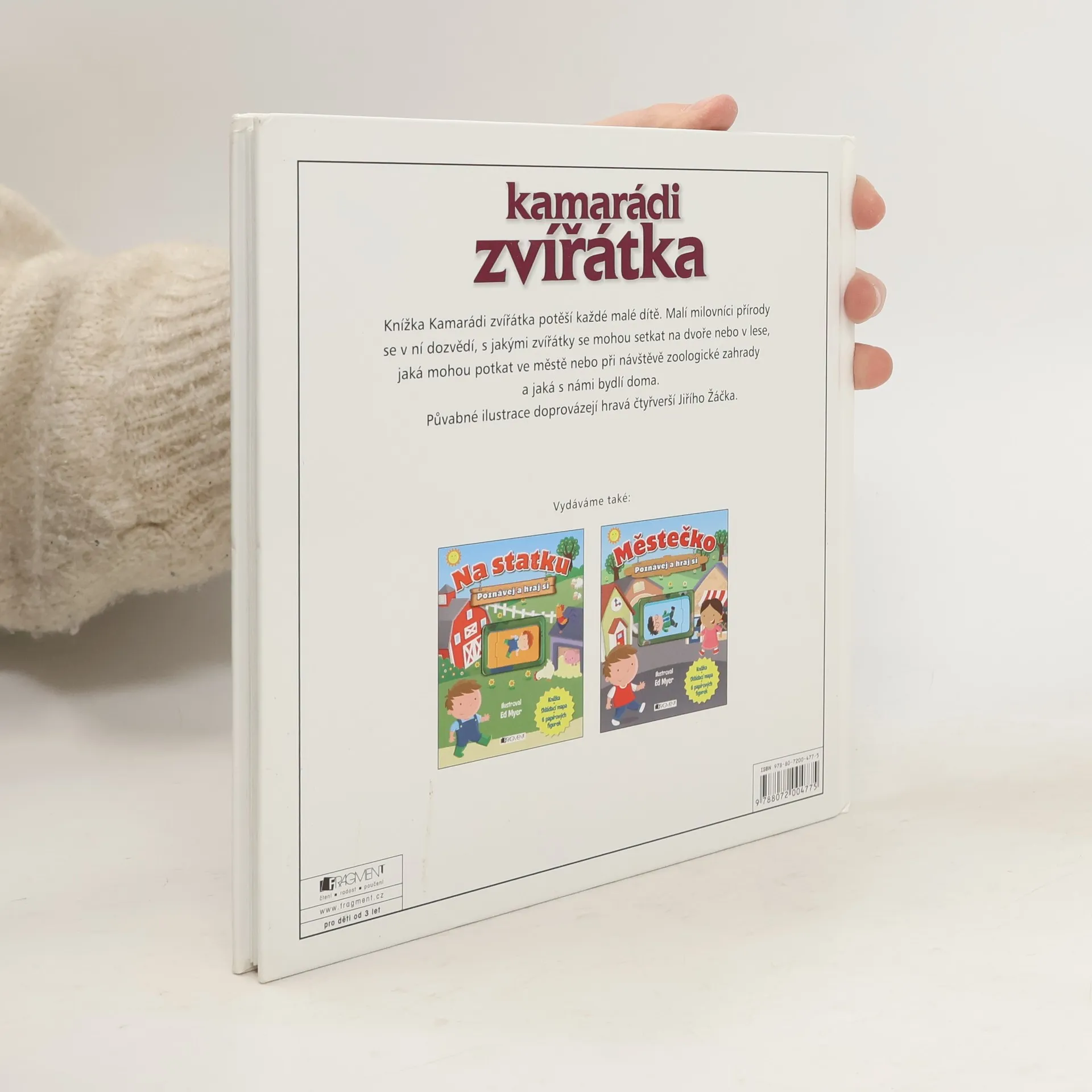 Knížka Kamarádi zvířátka potěší každé malé dítě. Malí milovníci přírody se v ní dozvědí, s jakými zvířátky se mohou setkat na dvoře nebo v lese, jaká mohou potkat ve městě nebo při návštěvě zoologické zahrady a jaká s námi bydlí doma. Půvabné ilustrace doprovázející hravá čtyřverší Jiřího Žáčka.