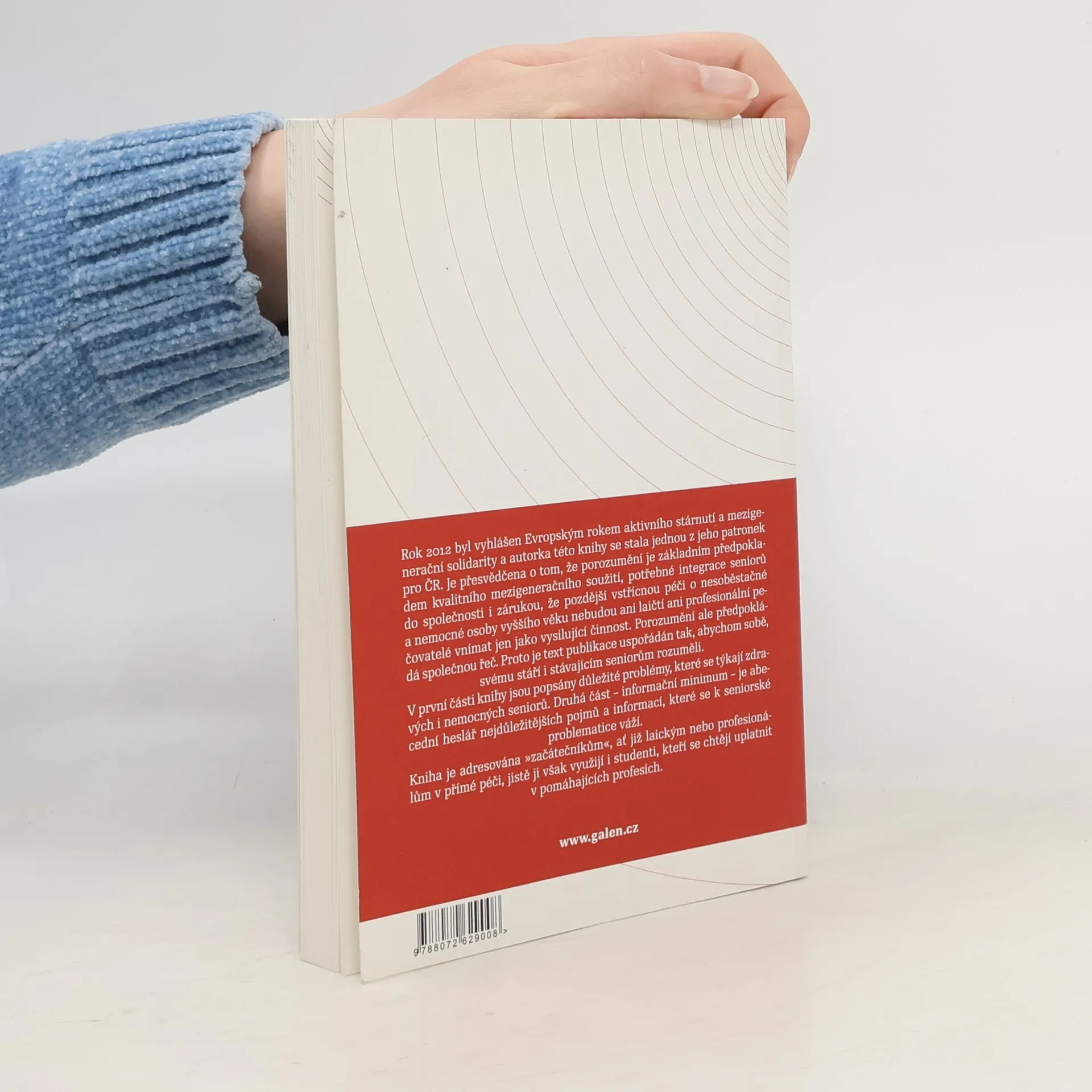 Publikace zkušené autorky je rozdělena do dvou částí. V první jsou popsány důležité problémy, které se týkají jak zdravých, tak i nemocných seniorů s důrazem na rady, jak máme seniorům vlastně rozumět. Druhá část - informační minimum - pak obsahuje abecední heslář nejdůležitějších pojmů a informací, které se k seniorské problematice váží. Kniha je adresována především „začátečníkům“, ať již laikům nebo profesionálům v přímé péči, jistě ji však využijí i studenti a další zájemci o problematiku stárnutí a stáří.