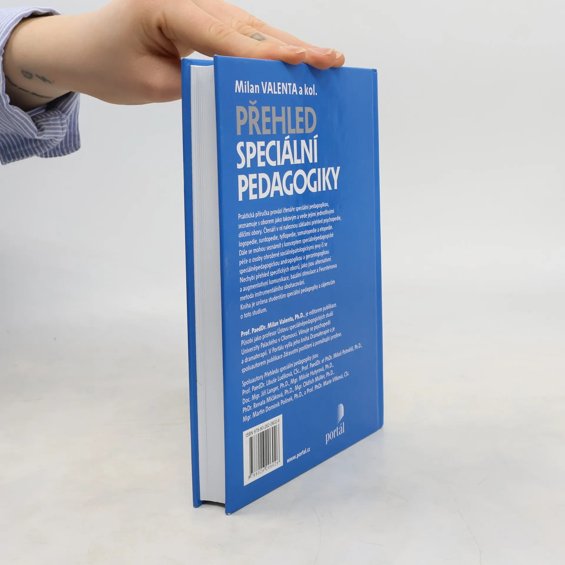 Praktická příručka provází čtenáře speciální pedagogikou, seznamuje s oborem jako takovým a provází jednotlivými dílčími obory. Čtenáři v ní naleznou základní přehled psychopedie, logopedie, surdopedie, tyflopedie, somatopedie a etopedie. Dále se mohou seznámit s konceptem speciálně-pedagogické péče o osoby ohrožené sociálně patologickými jevy a se speciálně-pedagogickou andragogikou a gerentogogikou. Nechybí přehled specifických oborů, jako jsou alternativní a augmentativní komunikace, bazální stimulace a Feursteinova metoda instrumentálního obohacování. Kniha je určena studentům speciální pedagogiky a zájemcům o toto studium. Prof. PaedDr. Milan Valenta, Ph.D., je editorem publikace. Působí jako profesor Ústavu speciálněpedagogických studií University Palackého v Olomouci. Věnuje se psychopedii a dramaterapii. V Portálu vyšla jeho kniha Dramaterapie a je spoluautorem publikace Zdravotní postižení a pomáhající profese. Spoluautory jsou prof. PaedDr. Libuše Ludíková, CSc., prof. PaedDr. et PhDr. Miloň Potměšil, Ph.D., doc. PaedDr. Jiří Langer, Ph.D., Mgr. Míla Hutyrová, Mgr. Renata Mlčáková, Mgr. Oldřich Muller, Ph.D., Mgr. Martin Dominik Polínek, Ph.D., a prof. PhDr. Marie Vítková, CSc.