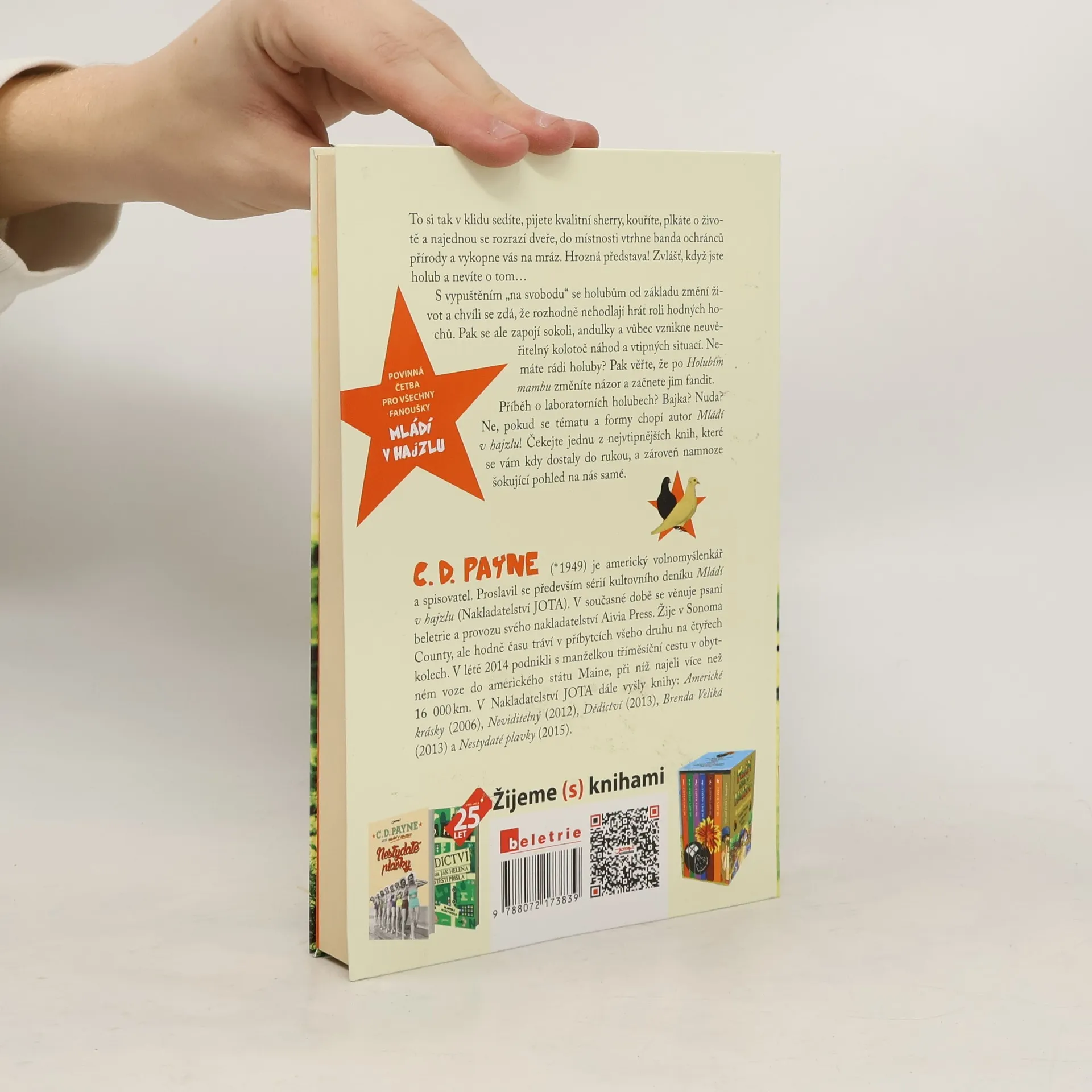 Co si myslí holubi, které banda ochránců přírody odvleče z útulné laboratoře, kde se ve jménu vědy zcela spokojeně učí kouřit, opíjet a přejídat, aby se zjistily účinky téhož na lidský organismus, vám vynalézavě a vtipně tlumočí autor oblíbeného románu Mládí v hajzlu. Z neuvěřitelného kolotoče vyjdou holubi smířeni s faktem, že jsou zřejmě přece jen ptáci, a dokonce na to začnou být hrdi.