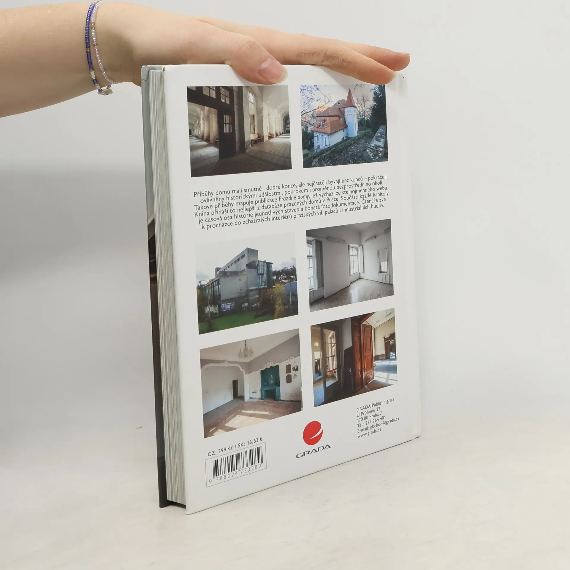 Příběhy domů mají smutné i dobré konce, ale nejčastěji bývají bez konců, pokračují. Ovlivněny historickými událostmi, pokrokem i proměnou bezprostředního okolí. Takové příběhy mapuje kniha Prázdné domy vycházející ze stejnojmenného webu. Internetové stránky spojily lidi, kterým na osudu těchto staveb záleží: Jsme přesvědčeni, že postavený dům nemá být prázdný. Zaznamenáváme. Hledáme příčiny. Motivujeme. Ovlivňujeme. Kniha Prázdné domy přináší to nejlepší z databáze prázdných domů v Praze. Součástí každé kapitoly je časová osa historie jednotlivých staveb a bohatá fotodokumentace. Čtenáře zve k procházce do zchátralých interiérů pražských vil, paláců i industriálních budov.