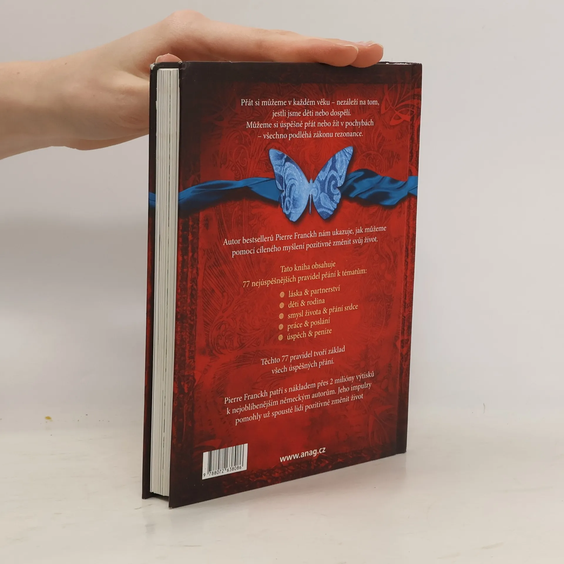 Přát si můžete v každém věku – lhostejno, zda jste dítě, nebo stařec, teenager, nebo v nejlepších letech. Ať objednáváme, přejeme si nebo pochybujeme – vše probíhá výhradně podle zákona přitažlivosti. A fascinující je, že úspěšná přání nemají žádné hranice. Přát si můžete prakticky cokoliv – Váš život bude pak šťastnější Pierre Franckh nám ve své knize 77 nejúspěšnějších pravidel pro přání ukazuje, jak můžeme pomocí správných přání obrátit svůj život k lepšímu. Ve své knize nám předkládá 77 nejúspěšnějších pravidel pro přání z těchto oblastí: láska & partnerství – děti & rodina – zdraví & wellness – povolání & kariéra – úspěch & majetek – jak si přejí děti – neobvyklá přání. Tato pravidla tvoří do jisté míry základ všech přání. Jak s tím začít a dosáhnout splnění našich přání, radí efektivním způsobem tato kniha.