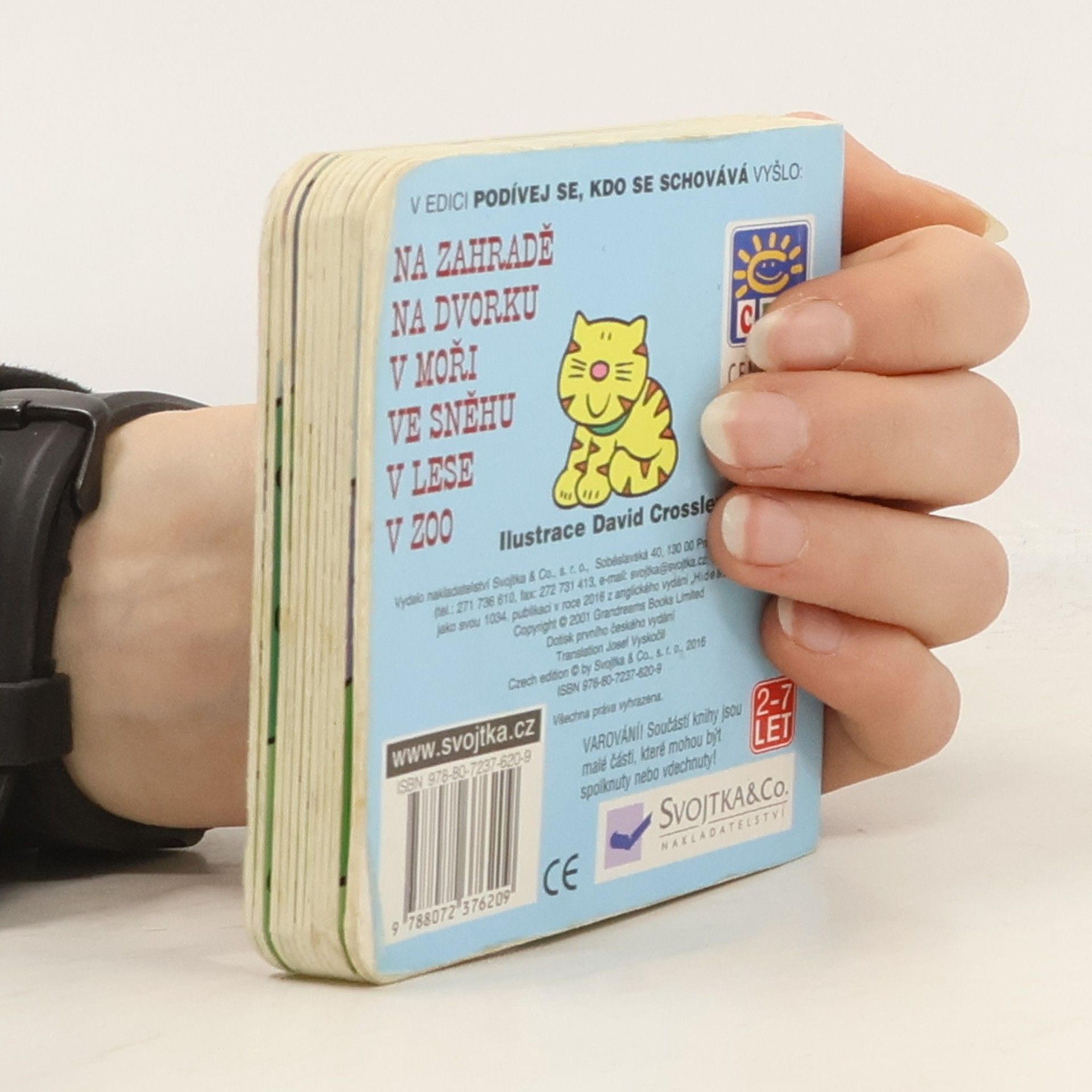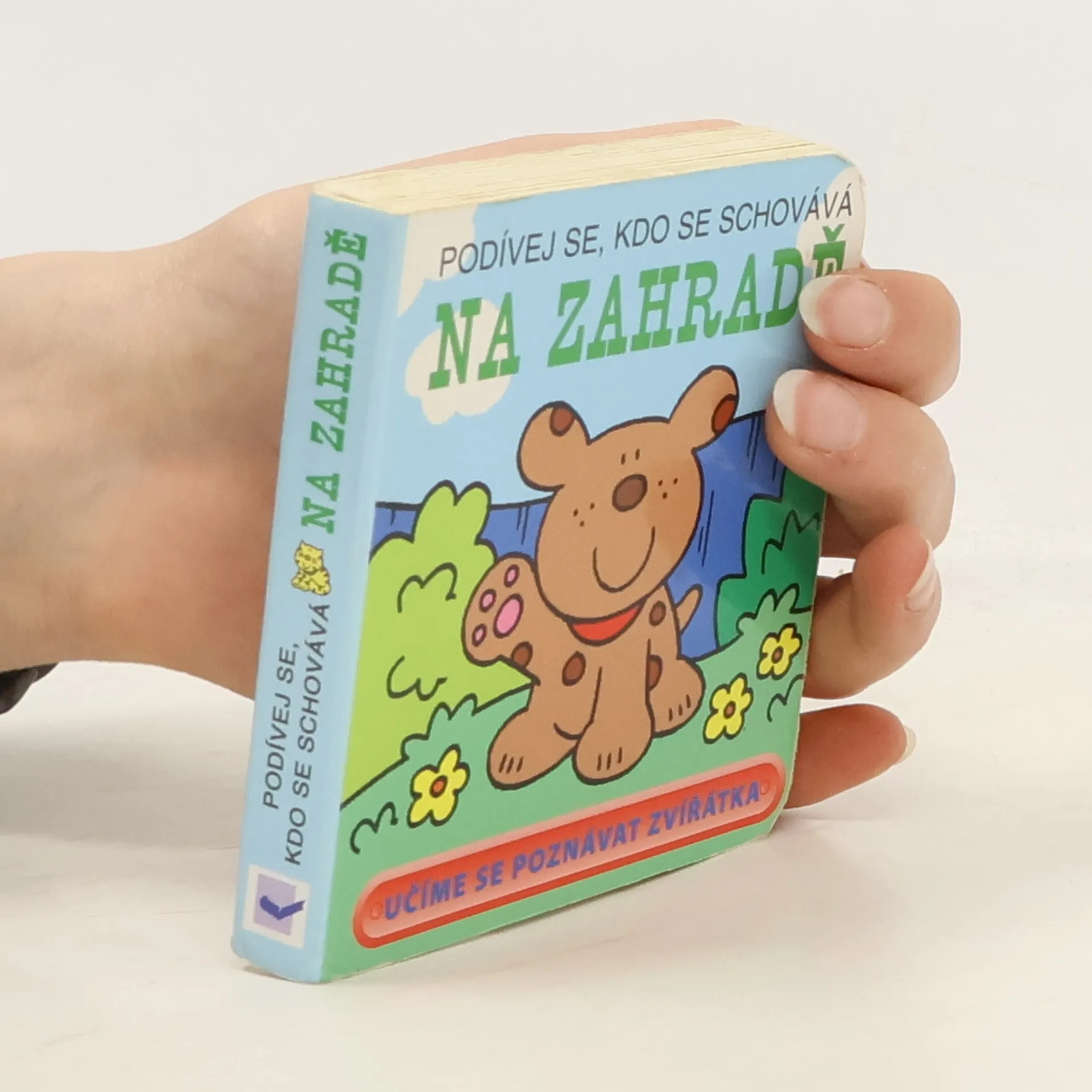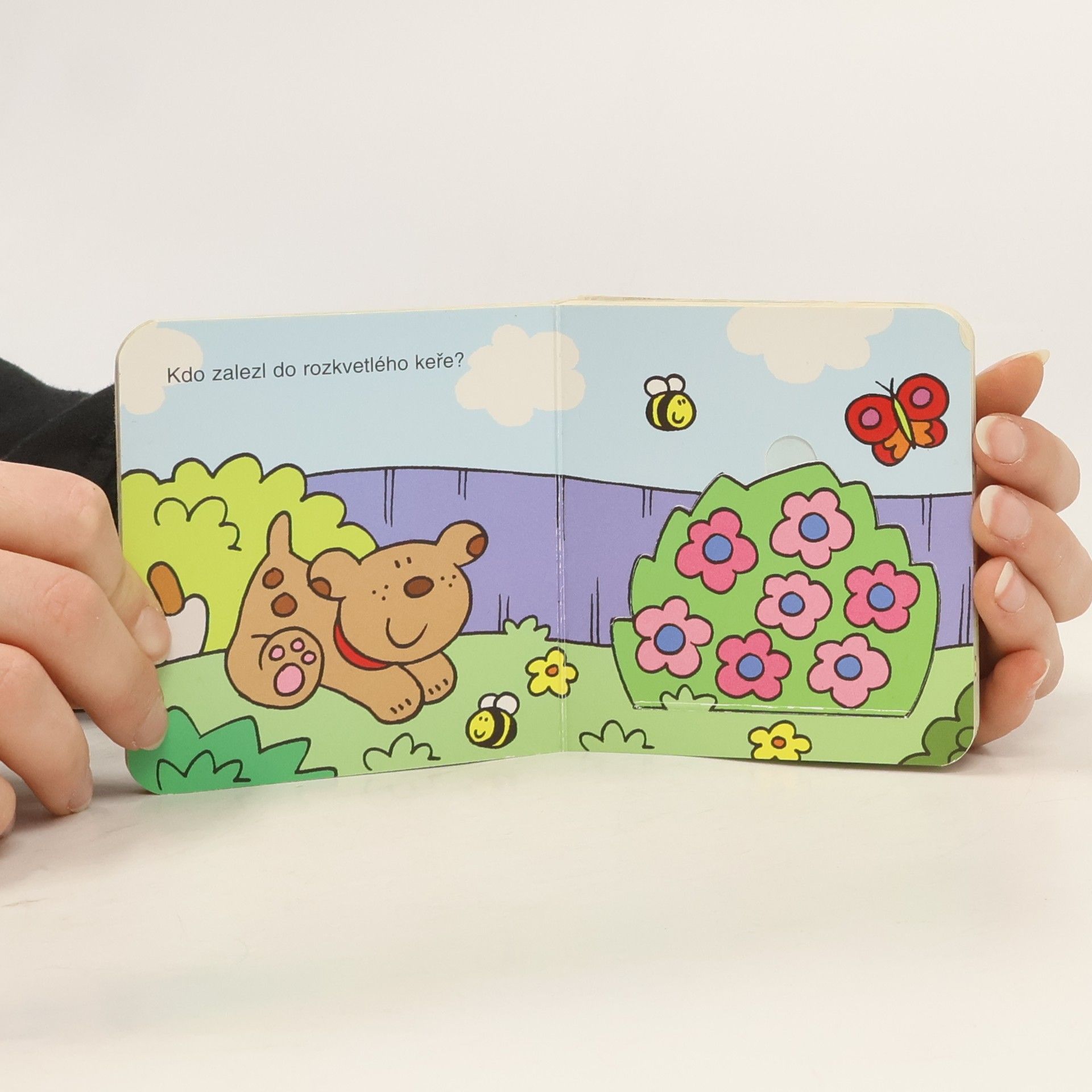 Por děti od jednoho do šesti let. Malá knížečka plná obrázků. Na každé dvojstraně je na první stránce pejsek s otázkou kdo se schovává např. pod lekníny v jezírku - na druhé straně je jezírko a když "odklopíte" jezírko, zjistíte, že je tam rybička ...