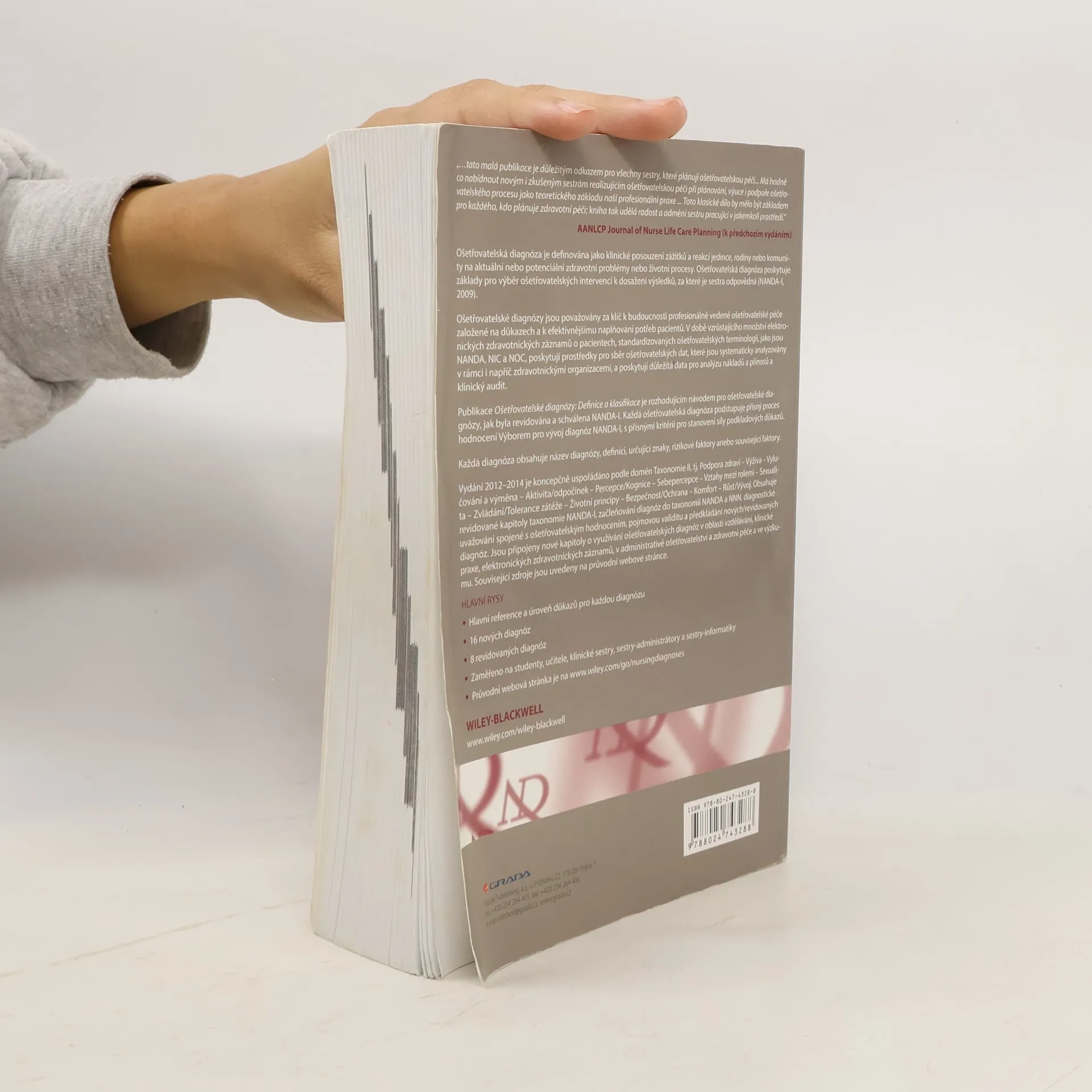 American Nursing Diagnosis Association — Severoamerická asociace pro sesterské diagnózy — přejmenovaná v roce 2002 na NANDA International se zabývá vývojem standardní terminologie a klasifikace ošetřovatelských diagnóz již téměř 40 let. Pořádá konference i pracovní jednání širokého týmu odborníků z USA, Kanady, Evropy i Asie. Zátěchto jednání a ze schvalovacích procesů vychází od roku 2001 vádvouletém cyklickém období publikace NANDA International: Ošetřovatelské diagnózy: definice a klasifikace, která obsahuje schválené, revidované a vyřazené ošetřovatelské diagnózy káurčitému datu. V České republice vyšel první oficiální překlad této publikace až vároce 2010. Nyní — vároce 2013 — je vám předkládáno další vydání textu NANDA-International: Ošetřovatelské diagnózy: definice a klasifikace 2012—2014. Kniha je potřebnou pomůckou pro studenty oboru ošetřovatelství a porodní asistence, pedagogy i klinické sestry, které chtějí poskytnout kvalitní ošetřovatelskou péči svým klientům.