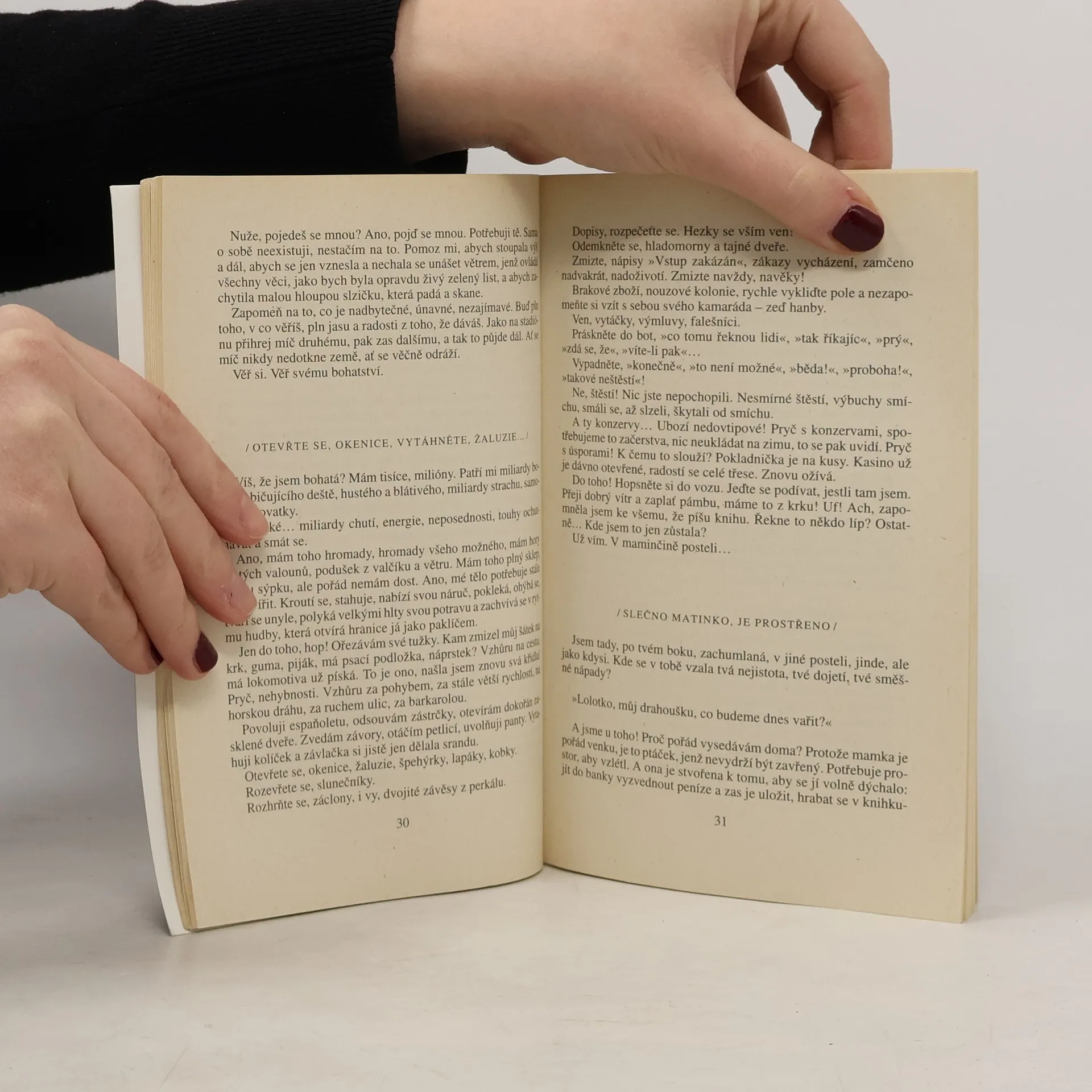 Proud vzpomínek, pocitů a svědectví vypovídá o životě a názorech divadelní a filmové herečky.