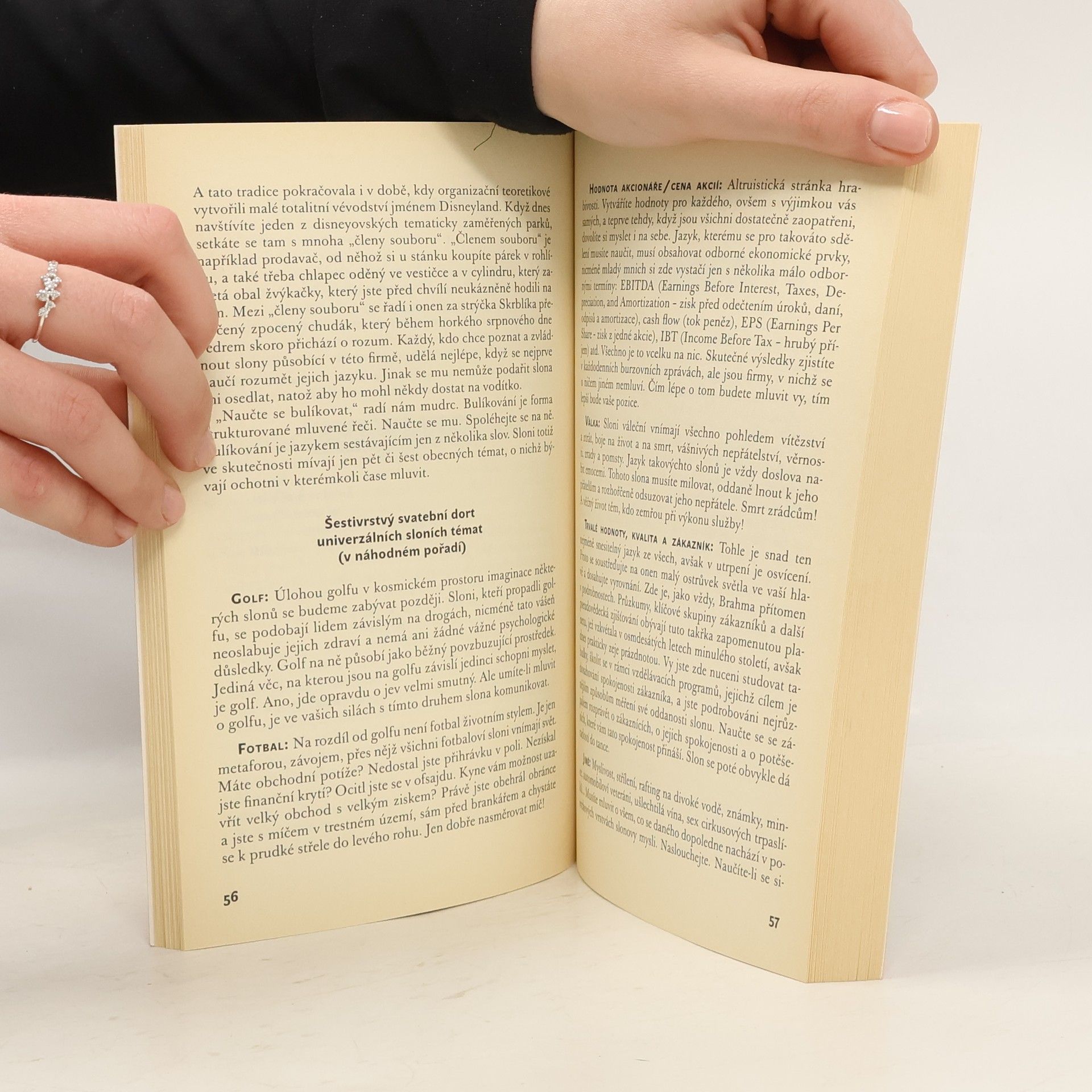 Kniha je humorně psaným průvodcem na cestě k dosažení vnitřní rovnováhy a klidu na pracovišti tváří v tvář mocným, děsivým a často slonům podobným stvořením, šéfům.