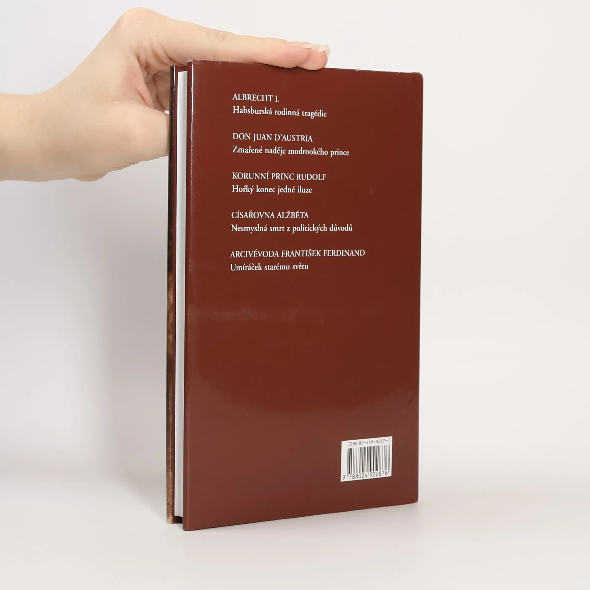 Závist, zášť či mocichtivost maří lidské životy a otáčejí kolo dějin. Historie je plná krvavých příběhů; násilná smrt si vybrala svou daň i v rodě Habsburků, kde v důsledku nečekaných úmrtí došlo k řadě politických zvratů... Albrecht, kterému se machinacemi podařilo zasednout na římskoněmecký trůn, se stal obětí vražedného spiknutí, které zosnoval jeho vlastní synovec. o Kariéru Juana d'Austria, slavného vítěze u Lepanta, zhatil jed. Rakouský korunní princ pravděpodobně spáchal sebevraždu, poté co zastřelil svou milenku. Život císařovny Alžběty ukončil nezaměstnaný anarchista. o Atentát v Sarajevu, při němž dva výstřely zasáhly následníka trůnu Františka Ferdinanda a jeho manželku Žofii Chotkovou, uvrhl tehdejší svět do chaosu, který vyústil v konec celé jedné éry a jehož následky jsou patrné dodnes. Přeložila Věra Houbová. Váz., 240 stran, 12,5 x 20 cm
