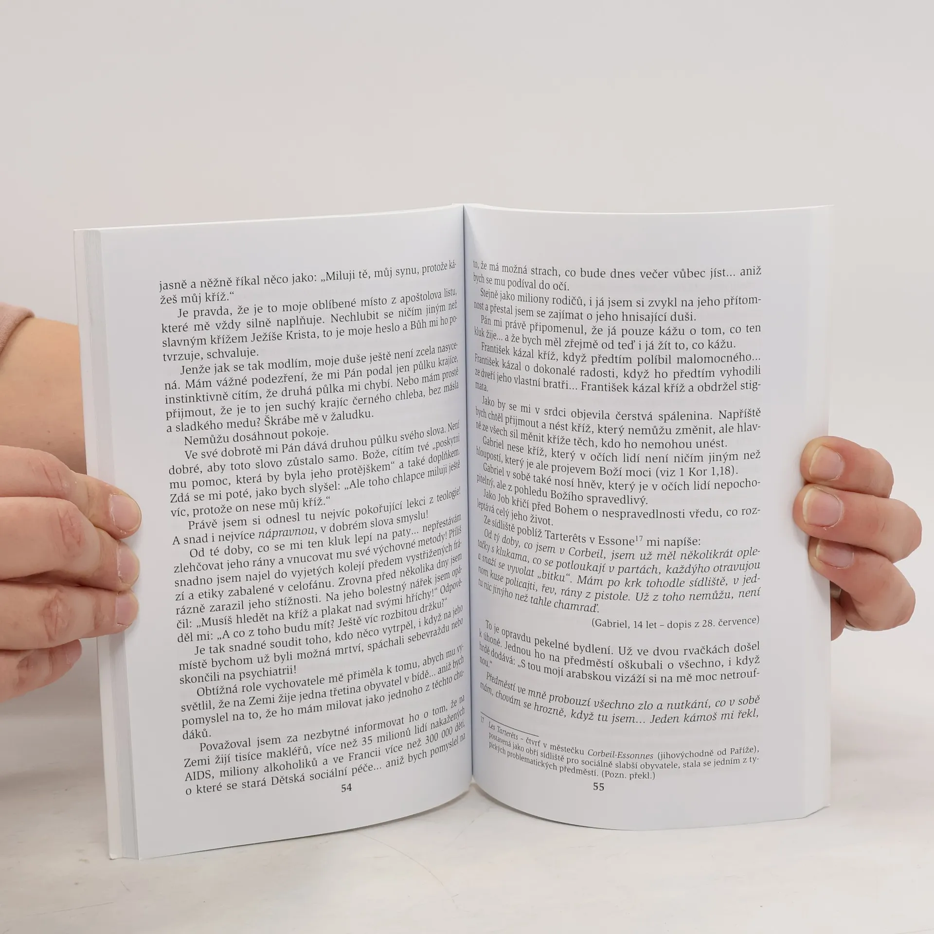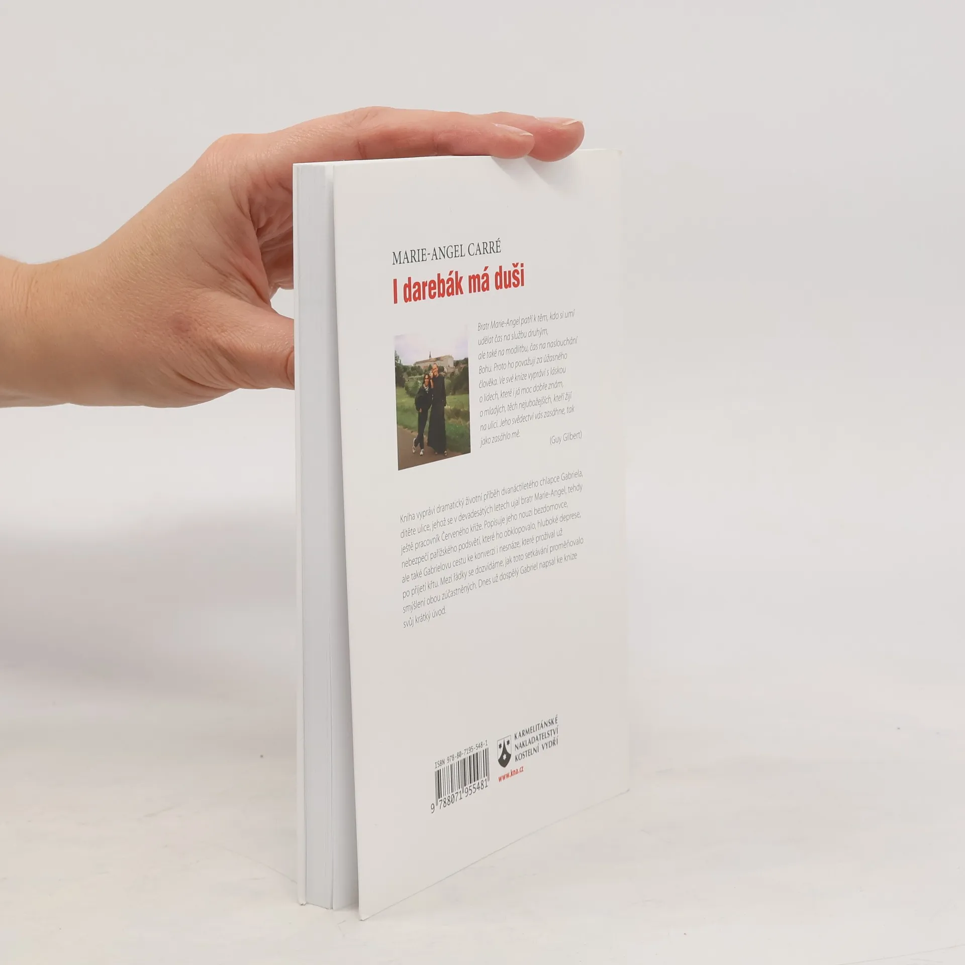 Vychovaný ulicí, zachráněný Bohem. Bratr Marie-Angel patří k těm, kdo si umí udělat čas na službu druhým, ale také na modlitbu, čas na naslouchání Bohu. Proto ho považuji za úžasného člověka. Ve své knize vypráví s láskou o lidech, které i já moc dobře znám, o mladých, těch nejubožejších, kteří žijí na ulici. Jeho svědectví vás zasáhne, tak jako zasáhlo mě. (Guy Gilbert) Kniha vypráví dramatický životní příběh dvanáctiletého chlapce Gabriela, dítěte ulice, jehož se v devadesátých letech ujal bratr Marie-Angel, tehdy ještě pracovník Červeného kříže. Popisuje jeho nouzi bezdomovce, nebezpečí pařížského podsvětí, které ho obklopovalo, hluboké deprese, ale také Gabrielovu cestu ke konverzi i nesnáze, které prožíval už po přijetí křtu. Mezi řádky se dozvídáme, jak toto setkávání proměňovalo smýšlení obou zúčastněných. Dnes už dospělý Gabriel napsal ke knize svůj krátký úvod.
