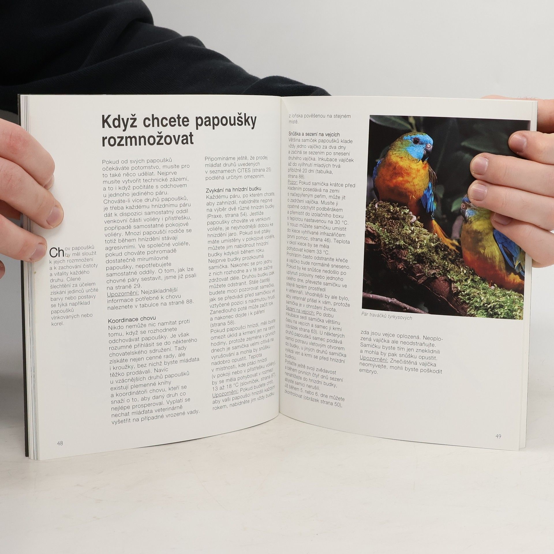 Podtitul: Jak je správně chovat a rozumět jim Pokračování úspěšné knihy pro milovníky papoušků. Odbornice na chov papoušků Annette Wolterová potěší chovatele přehledem dalších druhů. Poradí, jak papoušky správně chovat, aby byli zdraví. Text je doplněn 50 fotografiemi a 45 kresbami.