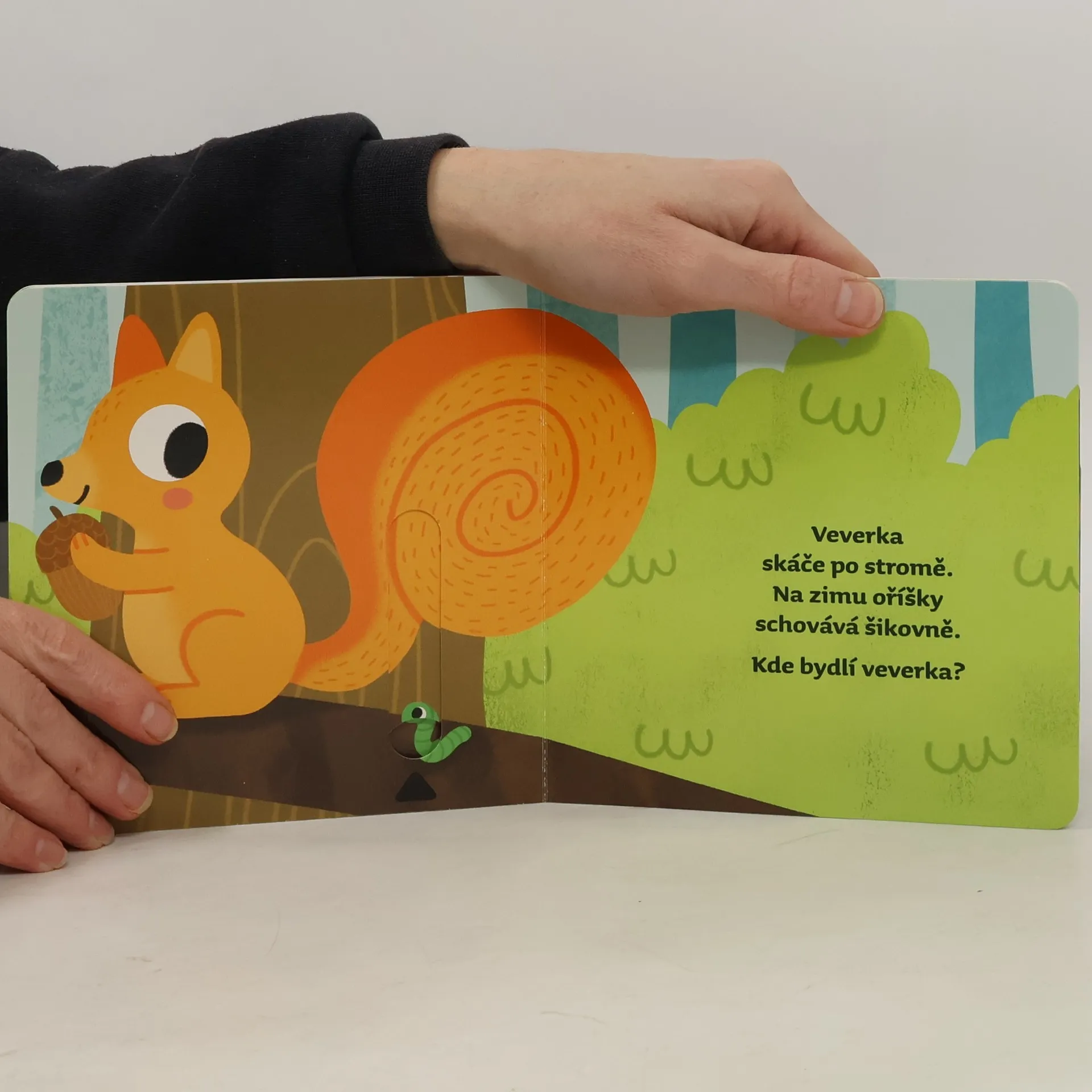 Na každé stránce najdeš okénko,posuň ho, vytáhni a zjisti,kde bydlí lesní zvířátka.Leporelo s pohyblivými prvky,ideální pro malé ručičky.