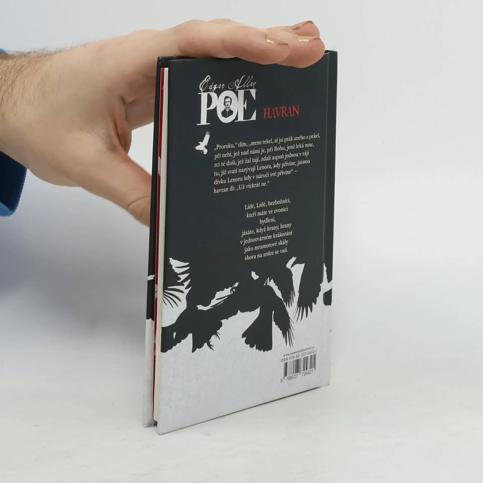Reedice výboru z poezie významného amerického básníka a spisovatele, který u nás poprvé vyšel v roce 1891 v překladu Jaroslava Vrchlického v nakladatelství Bursík a Kohout. Svazek je doplněn i o další soudobé překlady titulní básně, která je zde navíc otištěna i v originální podobě. O přetlumočení "Havrana" se kromě Vrchlického dále pokusili Vratislav Kazimír Šembera, Augustin Eugen Mužík a Karel Dostál Lutinov. Všech ostatních dvaatřicet Poeových textů, obsažených v tomto souboru, pak převedl do češtiny Jaroslav Vrchlický. Obsahuje básně: Havran -- Heleně -- Lenora -- Hymnus -- Kolosseum -- Sloky Heleně -- Své matce -- Zvony -- Annabel-Lee -- Eulalie -- Ulalum -- F.–S. S. O–D. -- Spící -- Očarovaný palác -- Ostrovu Zante -- Zem snů -- Někomu v ráji -- Eldorado -- Údolí neklidu -- Sen ve snu -- Město v moři -- Ticho -- Červ dobyvatel -- Pro Annie -- F... -- Svatební ballada -- Israfel -- Já nedbám... -- M. L. S. (1) -- Duchové mrtvých -- M. L. S. (2) -- Jezero -- Země vil Částečně v anglickém originále se souběžným českým překladem.