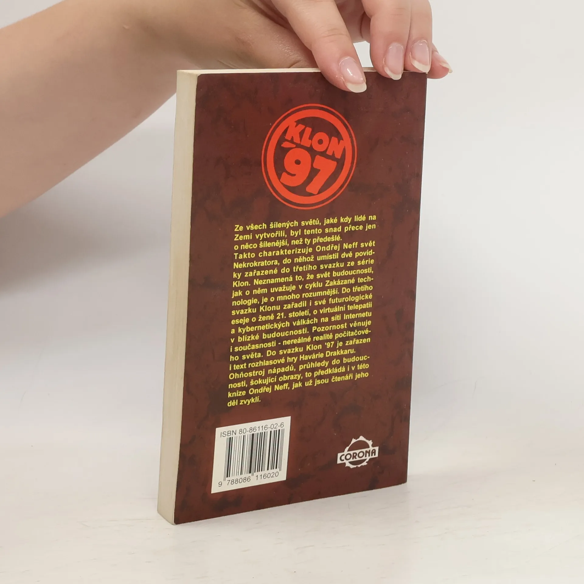 Ze všech šílených světů, jaké kdy lidé na Zemi vytvořili, byl tento snad přece jen o něco šílenější, než ty předešlé. Takto charakterizuje Ondřej Neff svět Nekrokratora, do něhož umístil dvě povídky zařazené do třetího svazku ze série Klon. Neznamená to, že svět budoucnosti, jak o něm uvažuje v cyklu Zakázané technologie, je o mnoho rozumnější. Do třetího svazku Klonu zařadil i své futurologické eseje o ženě 21. století, o virtuální telepatii a kybernetických válkách na síti Internetu v blízké budoucnosti. Pozornost věnuje i současnosti – nereálné realitě počítačového světa. Do svazku Klon '97 je zařazen i text rozhlasové hry Havárie Drakkaru. Ohňostroj nápadů, průhledy do budoucnosti, šokující obrazy, to předkládá i v této knize Ondřej Neff, jak už jsou čtenáři jeho děl zvyklí. První vydání zdroj: www.legie.info