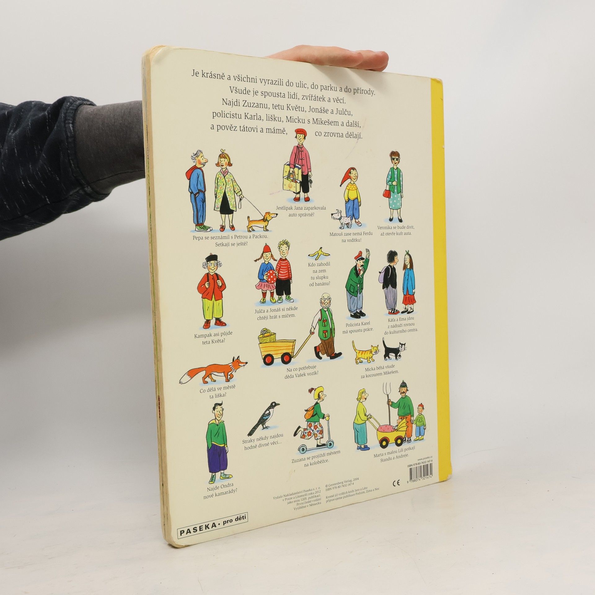 Jednoduchou řečí obrázků vypráví renomovaná autorka a ilustrátorka dětských knih Rotraut Susanne Bernerová příběhy všedního dne, obratně a vtipně splétá dohromady drobné epizody. "Malý čtenář" může v knížce hledat postavičky a zvířátka a sledovat co dělají od první do poslední stránky. Kudy chodí teta Květa, kde si kluk Ondra bude hrát s kamarády nebo co dělá ve městě liška.