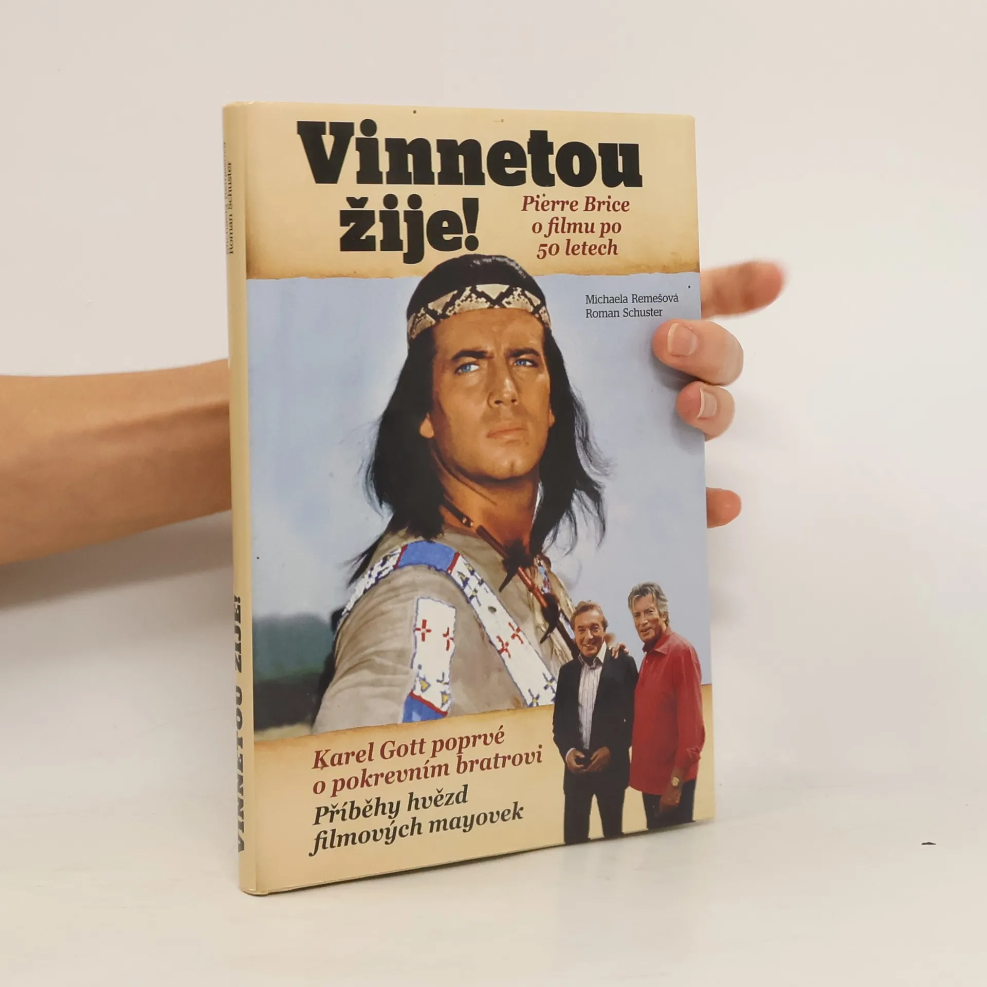 Kniha reportérů deníku Blesk, Michaely Remešové a Romana Schustera, vychází k 50. výročí prvního filmu ze slavné vinnetouovské série. Obsahuje reportáž z oslav v Chorvatsku, včetně rozhovoru s Pierrem Bricem, představitelem Vinnetoua. Dále přináší medailony filmových hrdinů a příběh pokrevního bratrství mezi Pierrem Brice a Karlem Gottem, včetně vzpomínek na jejich společné koncertní turné. Kniha také odhaluje málo známé české souvislosti s postavami mayovek, jako jsou české potomky Karla Maye a tragické osudy režiséra, jehož zavraždila česká manželka. Vinnetou žije jako symbol romantiky, ušlechtilosti, hrdinství a přátelství, a jeho příběh ovlivnil generace lidí po celé Evropě. Karel May vytvořil postavy Vinnetoua a Old Shatterhanda již v 19. století, ale jejich filmové zpracování před 50 lety přineslo fenomén, který dodnes nemá obdoby. Vinnetou a jeho dobrodružství jsou stále populární, a to nejen v českých televizích. Kniha nabízí pohled na osudy těch, kteří oživili hrdiny filmové série, a oslovuje čtenáře napříč generacemi.