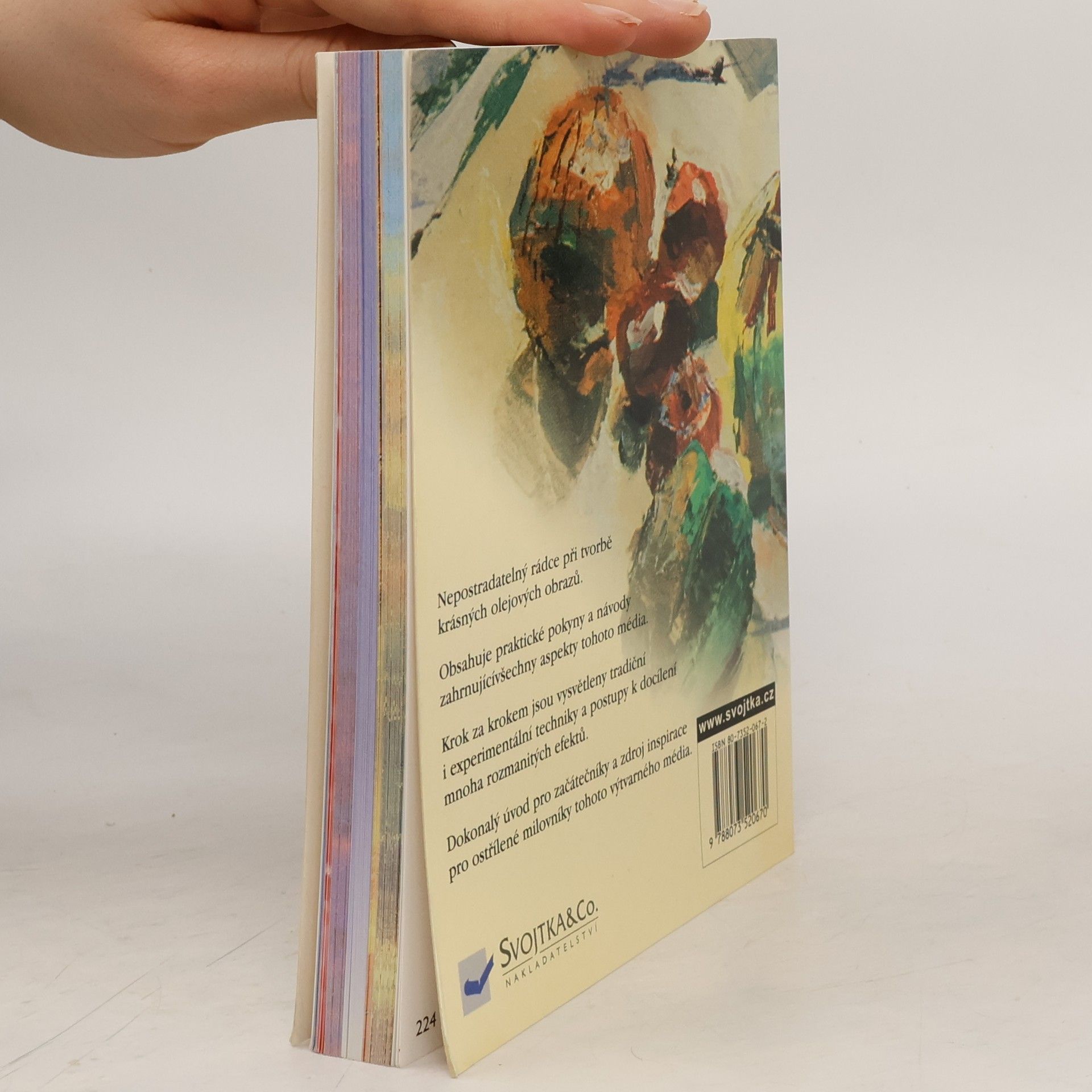 Nepostradatelný rádce při tvorbě krásných olejových obrazů. Obsahuje praktické pokyny a návody zahrnující všechny aspekty používání tohoto výtvarného prostředku. Krok za krokem jsou vysvětleny tradiční i experimentální techniky a postupy k docílení mnoha rozmanitých efektů. Dokonalý úvod pro začátečníky a zdroj inspirace pro ostřílené milovníky tohoto výtvarného média.