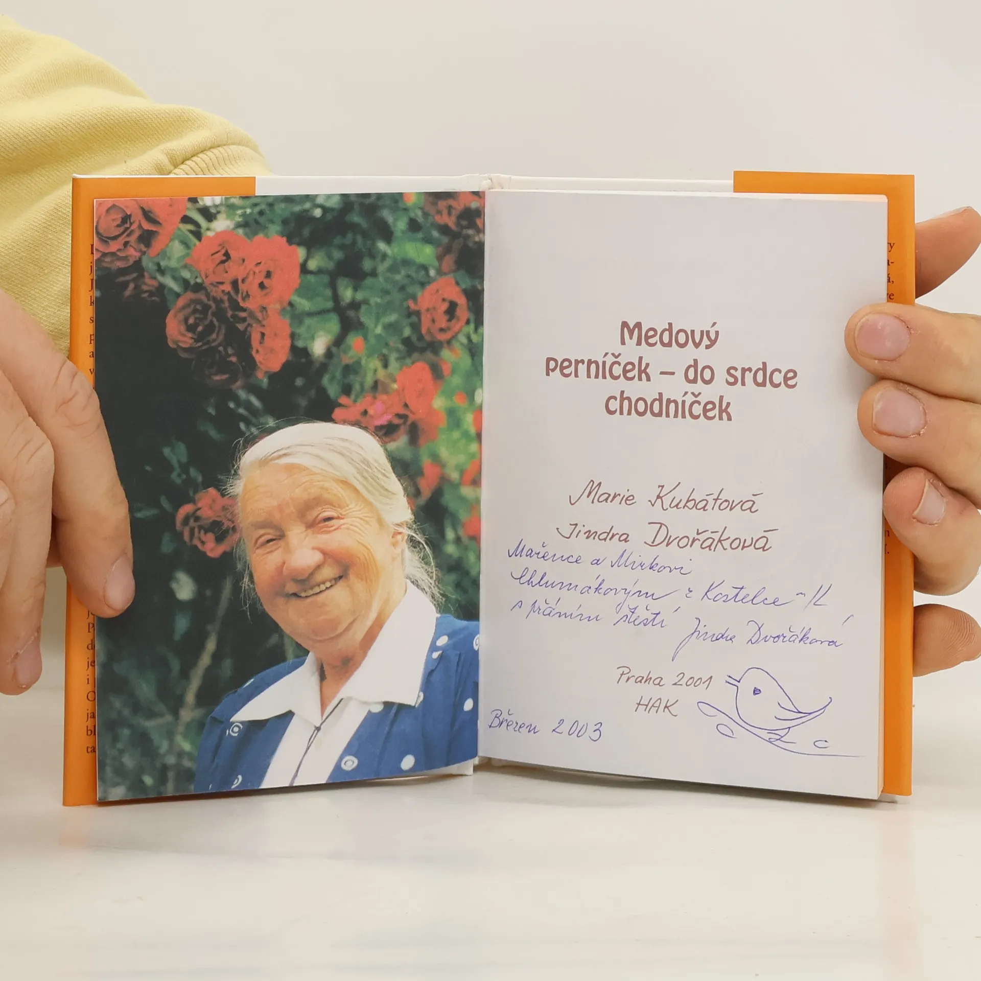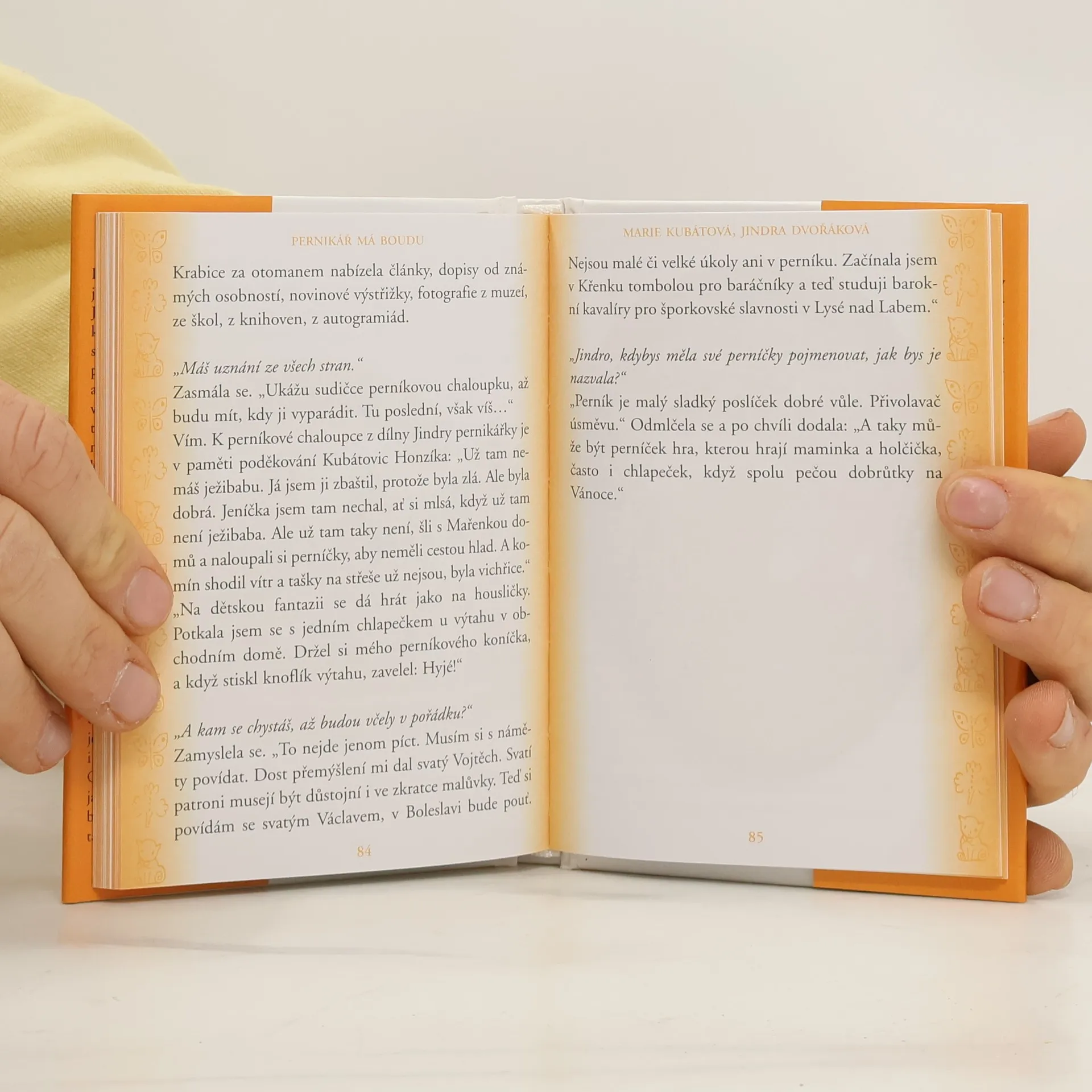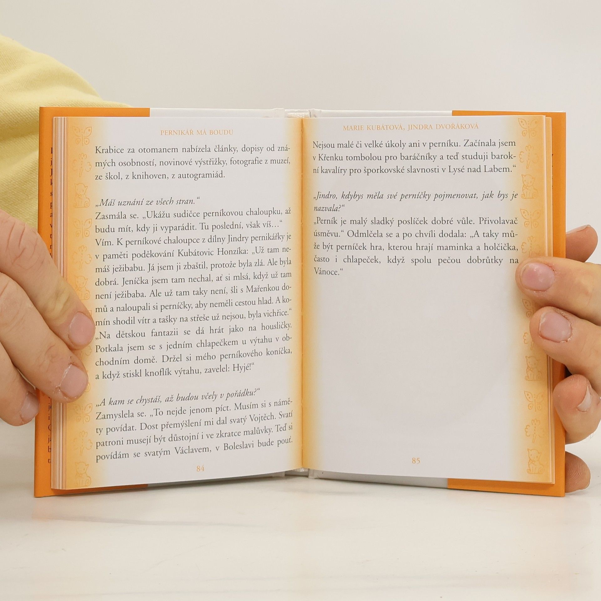 Životní příběh perníkářky Jindry Dvořákové sepsala spisovatelka Marie Kubátová, původní profesí magistra ve Vrchlabí. Autorka sedmi desítek oblíbených knih... Paní Kubátová psala s velkou chutí, lehce a hlavně s hlubokou znalostí věci - s Jindrou Dvořákovou, rozenou Čermákovou, ji totiž váže celoživotní přátelství zrozené před desítkami let ve škamnách pražského gymnázia. Tato knížka tedy nevypovídá jen o perníkářce a perníku, ale (v druhém plánu jaksi navíc) také o jednom velkém přátelství.