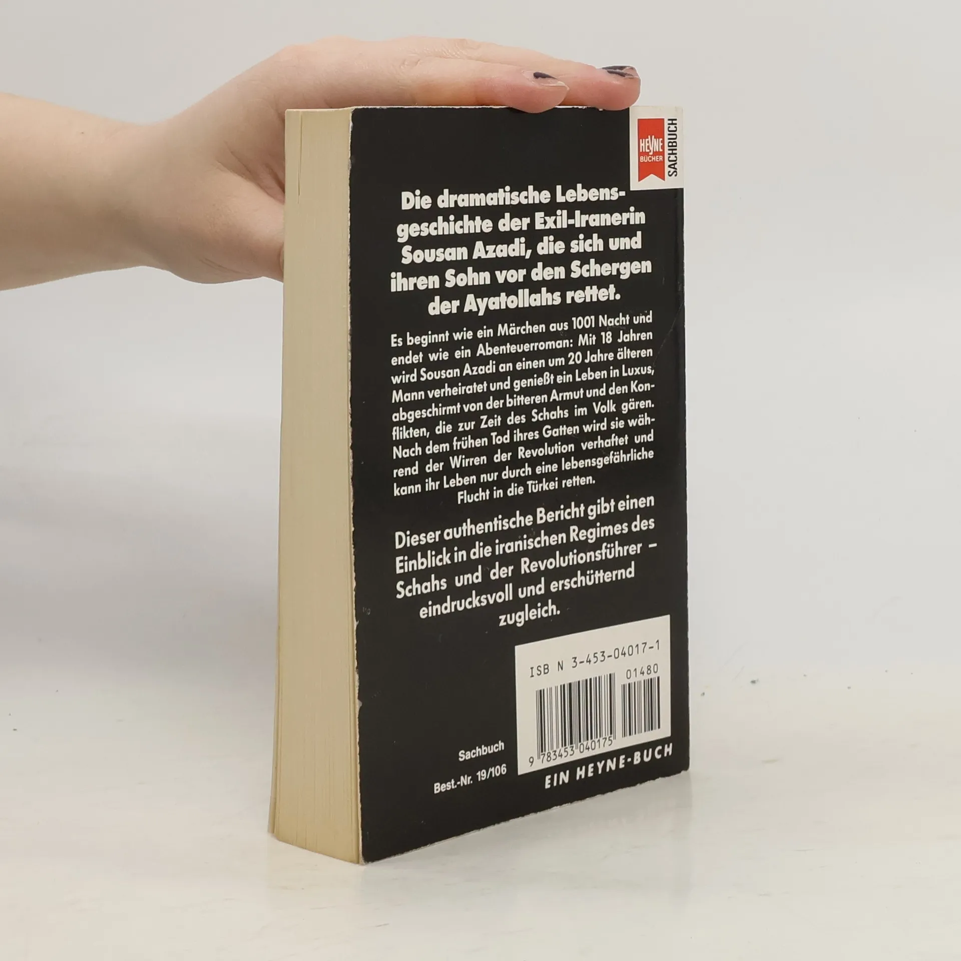 Was wirklich mit den Menschen im Iran geschieht, die nicht ins Schema der gläubigen Muslime passen, welchen Gefährdungen und welchen Folterungen sie ausgesetzt sind, das erzählt die dramatische Lebensgeschichte der Exiliranerin Sousan Azadi. Mit 18 Jahren wurde sie an einen um 20 Jahre älteren Mann verheiratet und genoss ein Leben in Luxus, wie es nicht einmal die Regenbogenpresse zu schildern imstande wäre. Doch der frühe Tod ihres Mannes setzt Sousan Azadi im mittlerweile von den Mullahs regierten Land der unausweichlichen Katastrophe aus: Als Fremde im eigenen Land mit westlichen Verhaltensregeln weiß sie nicht, wie sich eine islamische Frau zu benehmen hat. Rasch wird sie zur Zielscheibe der Revolutionswächter, die sie nach einer Hausdurchsuchung für eine Zeitlang ins Gefängnis werfen, das sich als wahre Hölle entpuppt. Eine Rettung sieht sie nur in einer Flucht ins Ausland, die ihr schließlich auch gelingt.