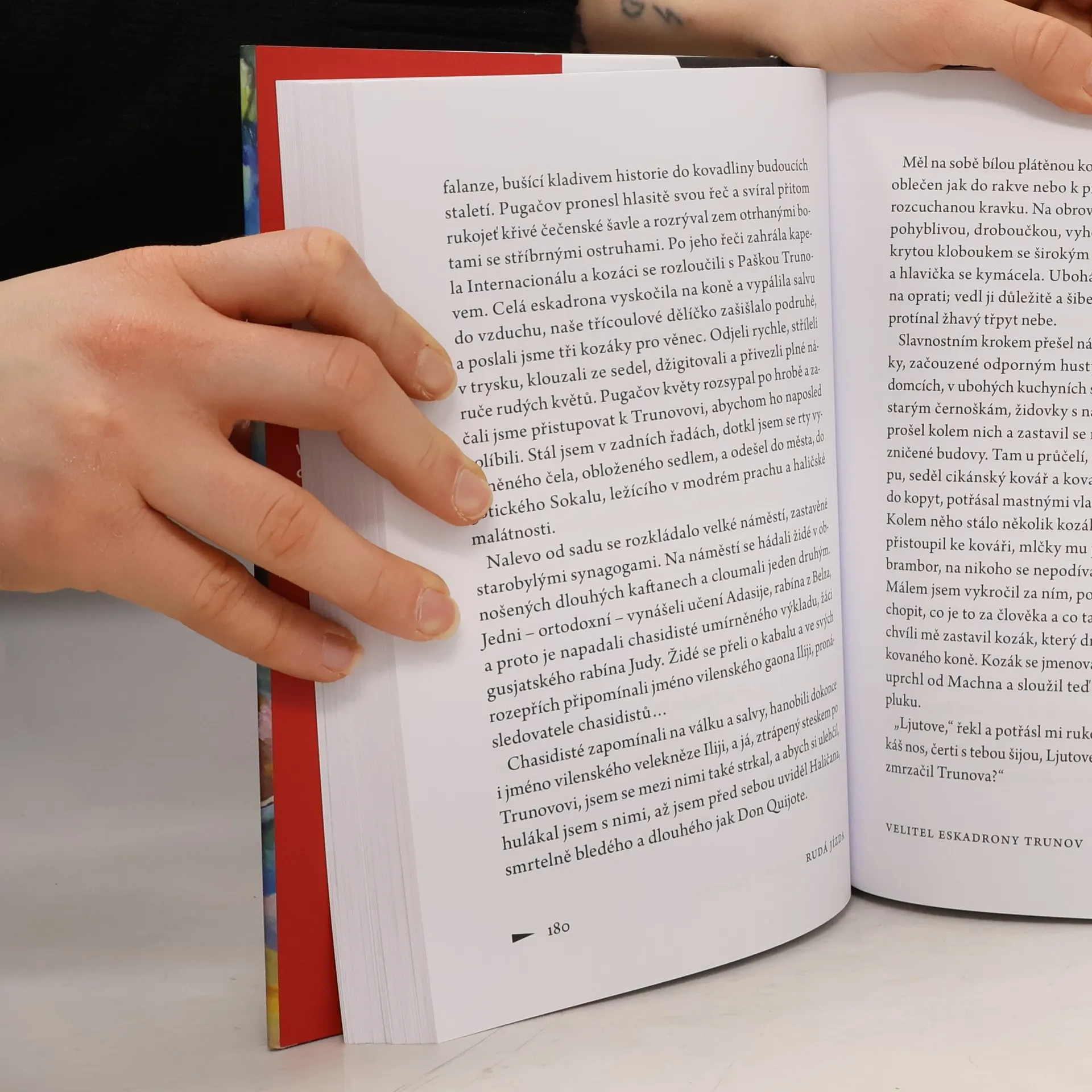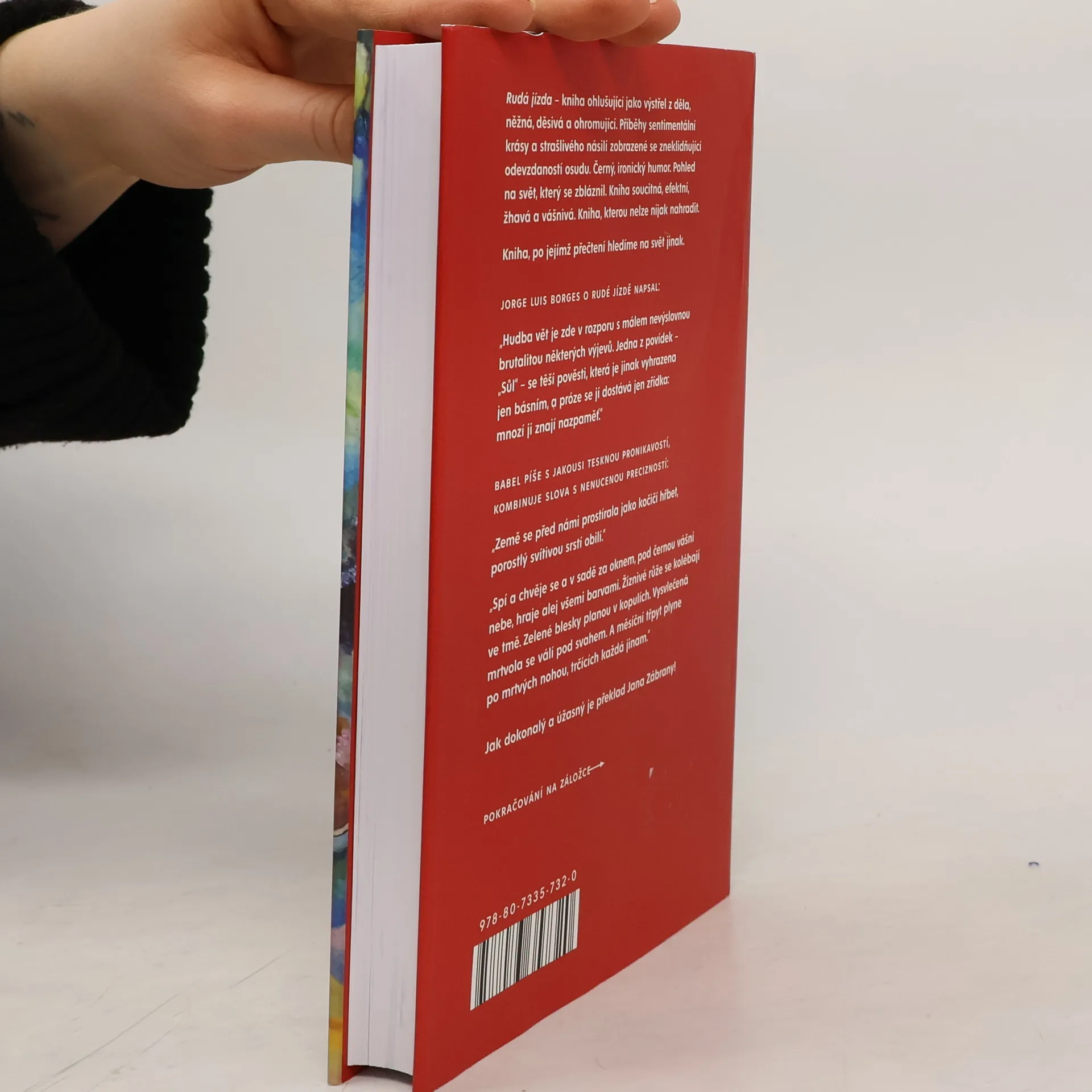 Rudá jízda – kniha ohlušující jako výstřel z děla, něžná, děsivá a ohromující. Příběhy sentimentální krásy a strašlivého násilí zobrazené se zneklidňující odevzdaností osudu. Černý, ironický humor. Pohled na svět, který se zbláznil. Kniha soucitná, efektní, žhavá a vášnivá. Rudá jízda se zrodila z autorova deníku, který si vedl v roce 1920 jako válečný zpravodaj u 1. jízdní armády. Účastnil se polsko-sovětské války o ovládnutí území dnešní Ukrajiny – konfliktu, v němž bojoval každý s každým a také s civilním obyvatelstvem. Vojáci oplakávají své zabité koně a pláčou, když je nějaká píseň obzvlášť dojímá... pak se otočí a páchají zvěrstva, masové vraždy civilistů.