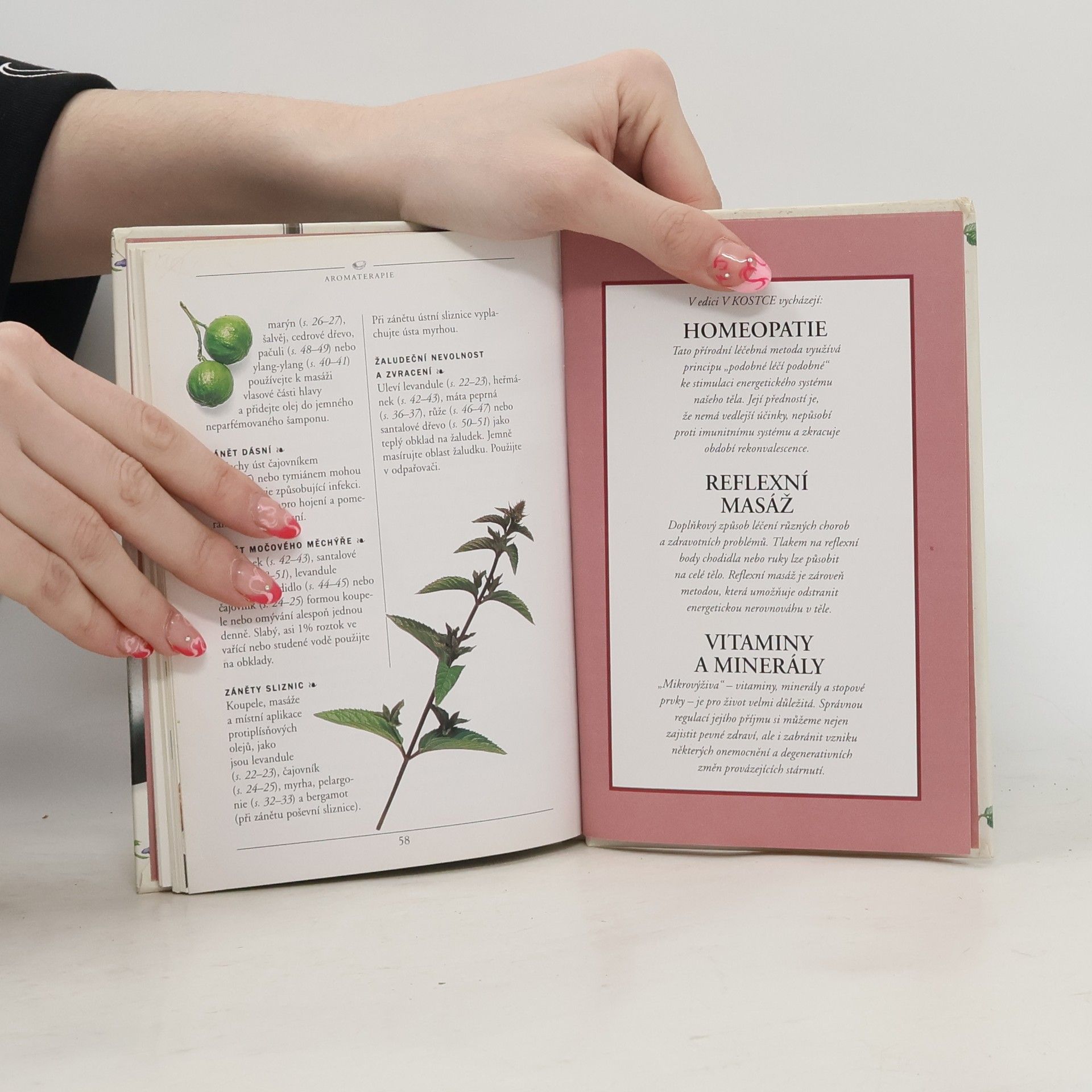 Aromaterapie v kostce zahrnuje: - popis 15 nejdůležitějších éterických olejů - informace o nosných olejích a směsích - použití éterických olejů v domácím prostředí Obsah: Co je aromaterapie? Stručná historie Jak aromaterapie účinkuje? Léčba Techniky aromaterapie Esenciální oleje Domácí použití Běžná onemocnění