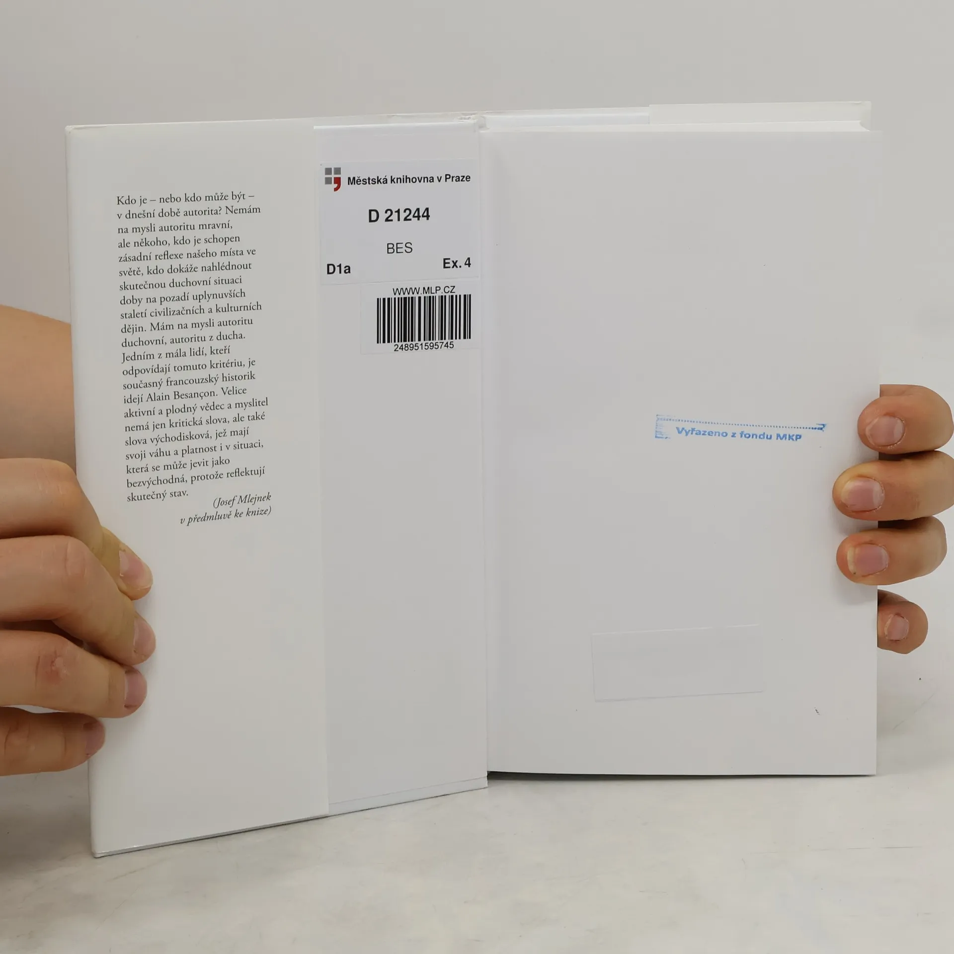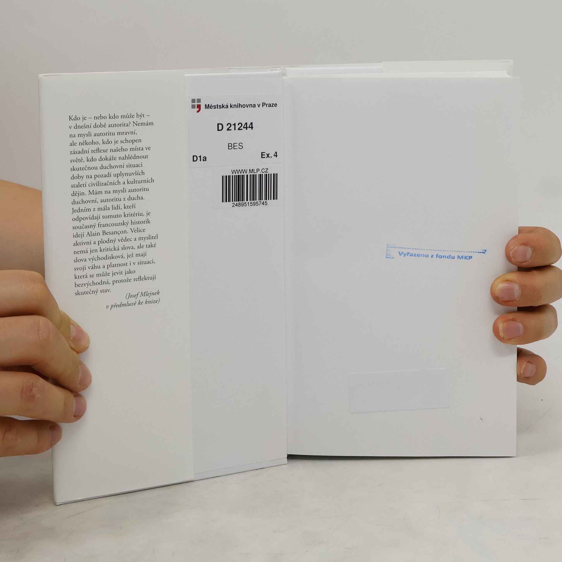 Kdo je – nebo kdo může být – v dnešní době autorita? Nemám na mysli autoritu mravní, ale někoho, kdo je schopen zásadní reflexe našeho místa ve světě, kdo dokáže nahlédnout skutečnou duchovní situaci doby na pozadí uplynuvších staletí civilizačních a kulturních dějin. Mám na mysli autoritu duchovní, autoritu z ducha. Jedním z mála lidí, kteří odpovídají tomuto kritériu, je současný francouzský historik idejí Alain Besançon. Velice aktivní a plodný vědec a myslitel nemá jen kritická slova, ale také slova východisková, jež mají svoji váhu a platnost i v situaci, která se může jevit jako bezvýchodná, protože reflektují skutečný stav. (Josef Mlejnek v předmluvě ke knize)