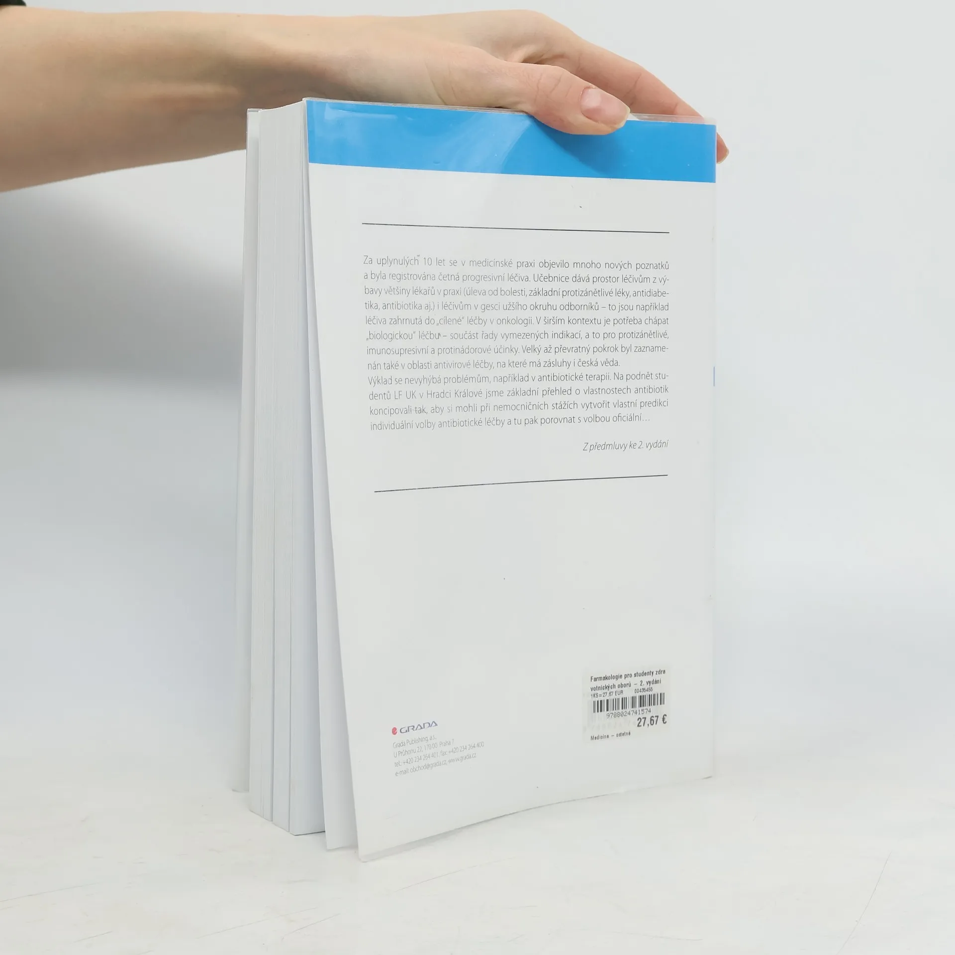 Druhé, zcela přepracované a doplněné vydání mimořádně úspěšné učebnice pro studenty zdravotnických oborů na lékařských a zdravotně sociálních fakultách i vyšších odborných školách. Text je doplněn mnoha grafy a praktickými příklady z praxe. Dvojbarevná, didakticky velmi ceněná publikace obsahuje množství praktických poznatků, které potřebují členové interdisciplinárního zdravotnického týmu pro předepisování a podávání léků, sledování jejich účinků i edukaci pacienta. Kniha obsahuje více než sto obrázků, několik desítek schémat a téměř sto tabulek.