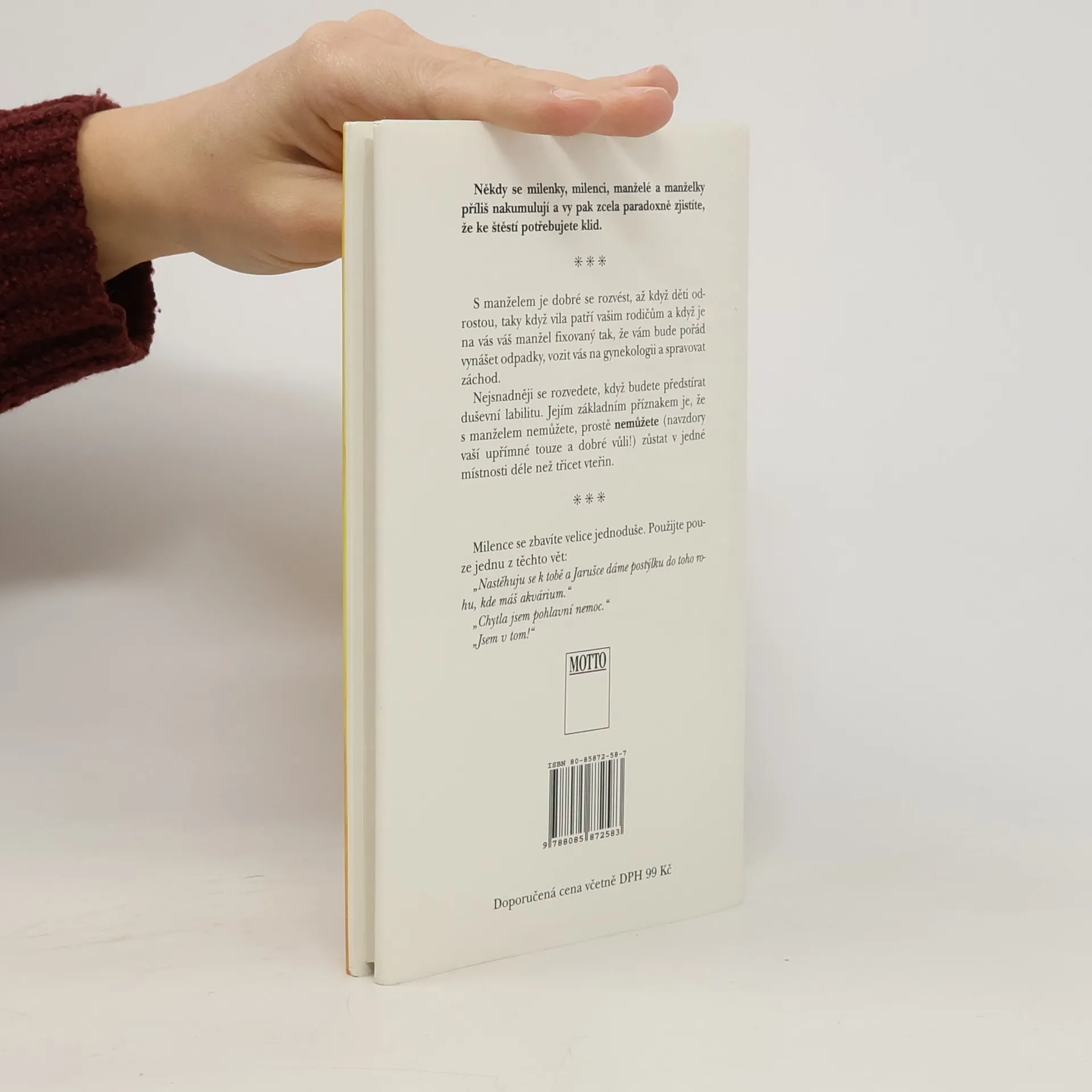 Lehké poznatky, vyslechnuté osudy a rady, které si dávají kamarádky, kamarádi, rodiče, děti a známí. Neberte všechno, co je na papíře, vážně. Slova mají totiž skutečnou vážnost jen tehdy, když jde o petice, o závěť a o smlouvy...