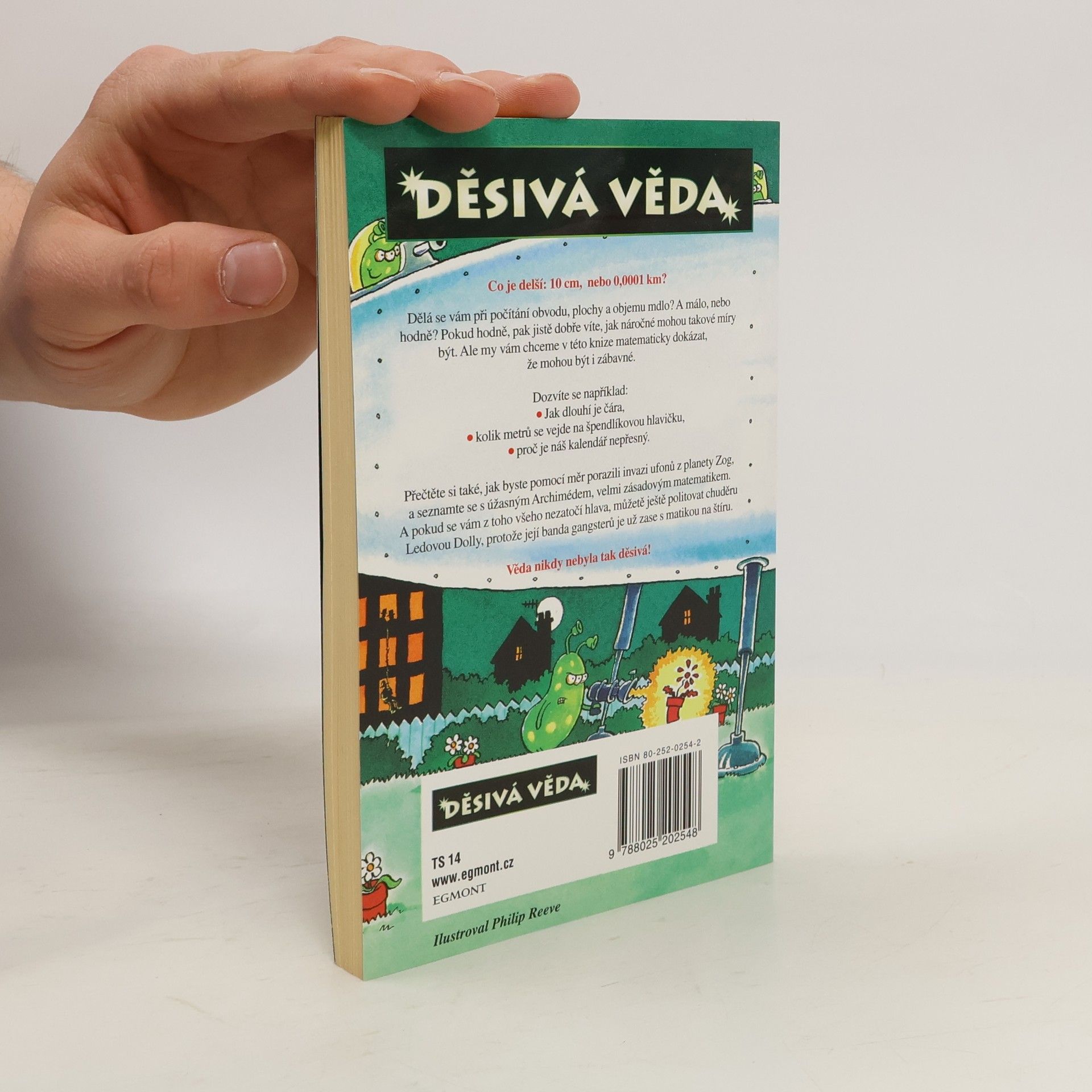 Co je těžší, kilo železa, nebo kilo peří? Dělá se vám při počítání obvodu, plochy a objemu mdlo? A málo, nebo hodně? Pokud hodně, pak jistě dobře víte, jak náročné mohou takové míry být. Ale my vám chceme v této knize matematicky dokázat, že mohou být i zábavné. Dozvíte se například, jak dlouhá je čára, kolik metrů se vejde na špendlíkovou hlavičku nebo proč je náš kalendář nepřesný. Přečtěte si také, jak byste pomocí měr porazili invazi ufonů z planety Zog, a seznamte se s úžasným Archimédem, zásadovým matematikem, který nás obdařil nesmrtelnou poučkou o tělesu ponořeném v kapalině.