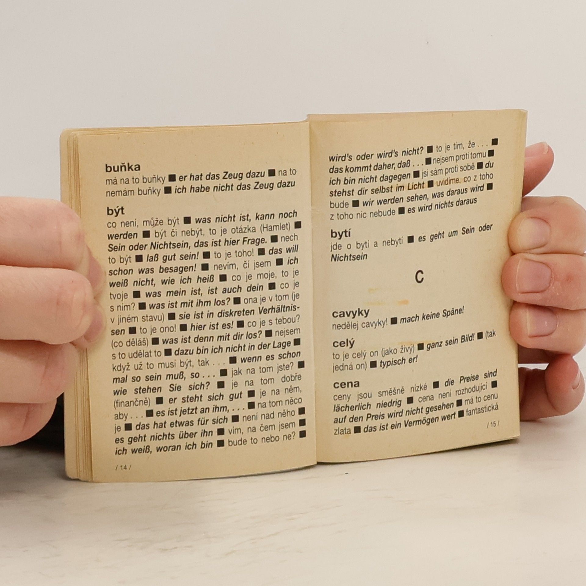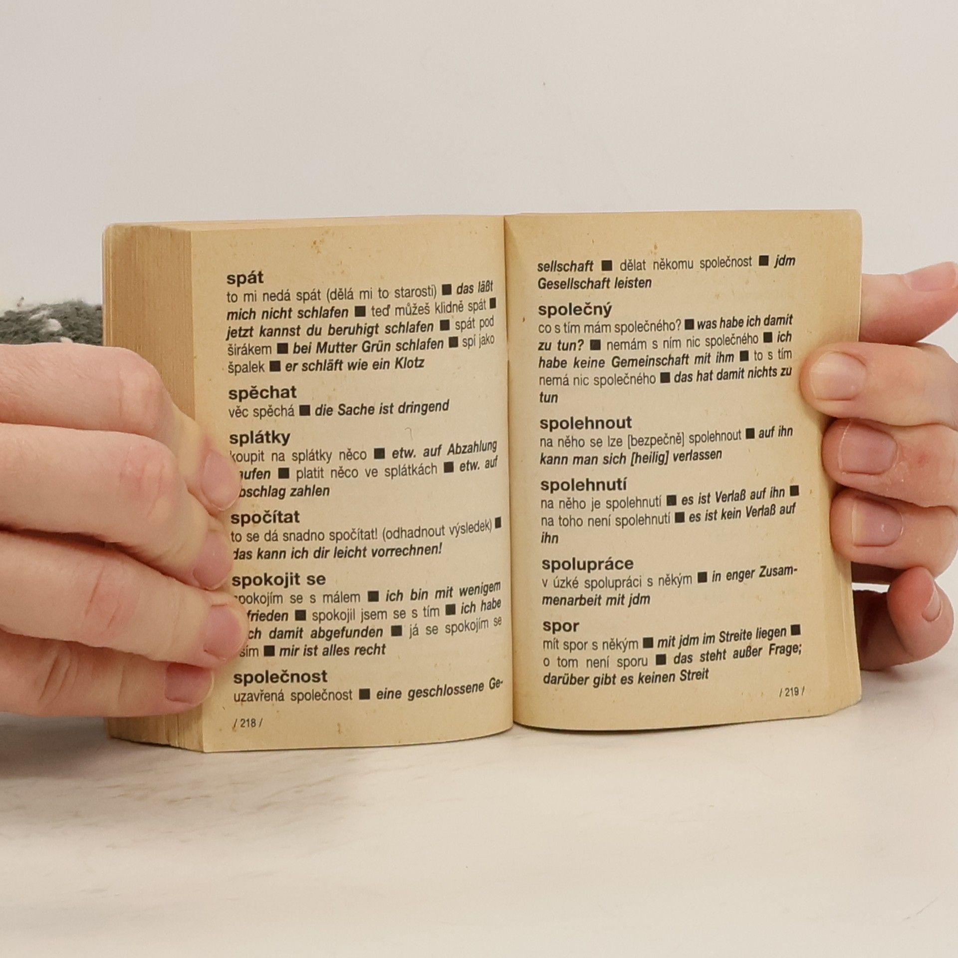 Informace z obálky: " Dokonalá němčina vyžaduje i zvládnutí jazyka "hovorového", který toleruje určité odchylky od jazyka spisovného. Tento slovník umožňuje úspěšně vyjadřovat názory a postoje, bavit se, diskutovat, argumentovat i sdělovat si myšlenky nejen jazykem literárním."