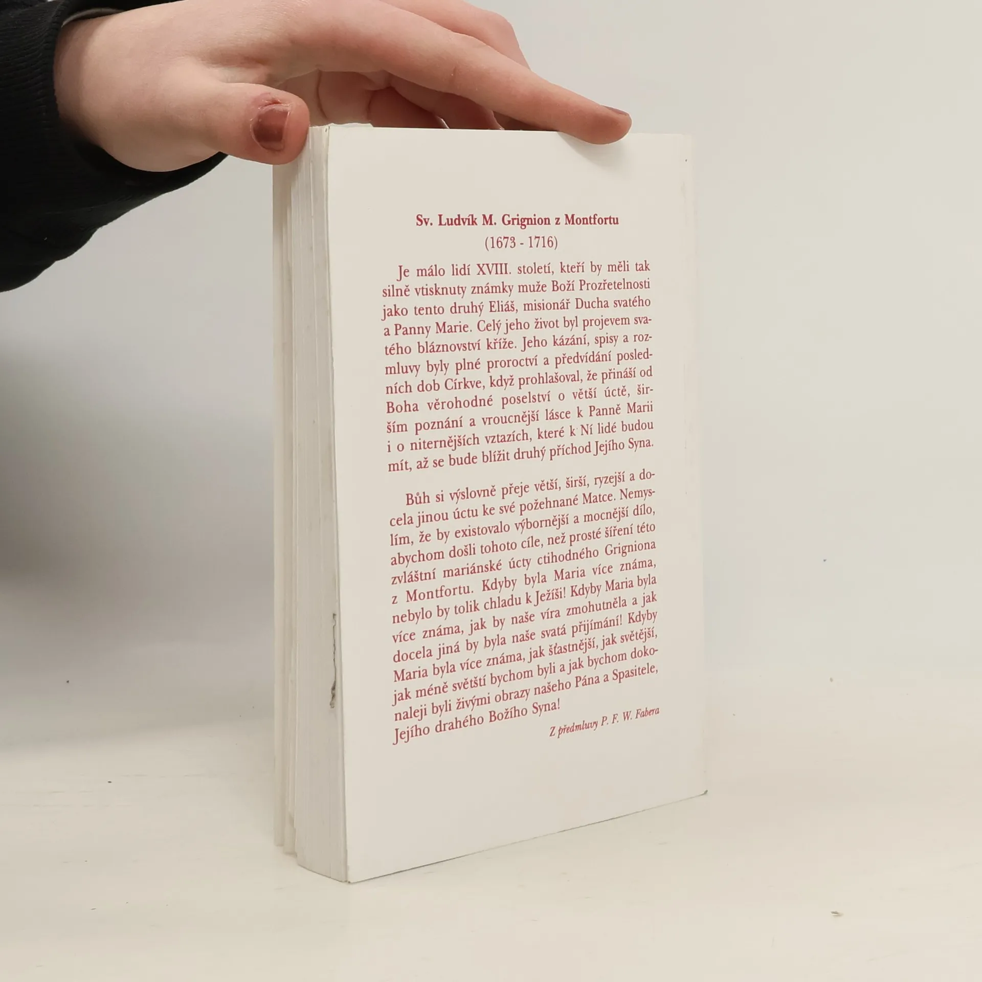 Jeden z nejznámějších spisů o Panně Marii vůbec. Papeže Jana Pavla II. ovlivnila tato kniha už jako mladého kněze tak, že si za své biskupské i papežské heslo vybral Grignionovu krátkou zásvětnou modlitbu Totus tuus: „Jsem celý Tvůj a všechno, co mám je Tvé, můj milý Ježíši, skrze Marii, Tvou svatou Matku.“ Publikace je doplněna světcovým životopisem a doporučeními několika papežů 20. století. Kniha obsahuje sešitovou přílohu: Modlitby doporučované sv. Ludvíkem M. Grignionem z Montfortu (59.str) Kniha zřejmě vznikla kolem roku 1712; byla nalezena ve světcově pozůstalosti a poprvé vyšla v roce 1842.