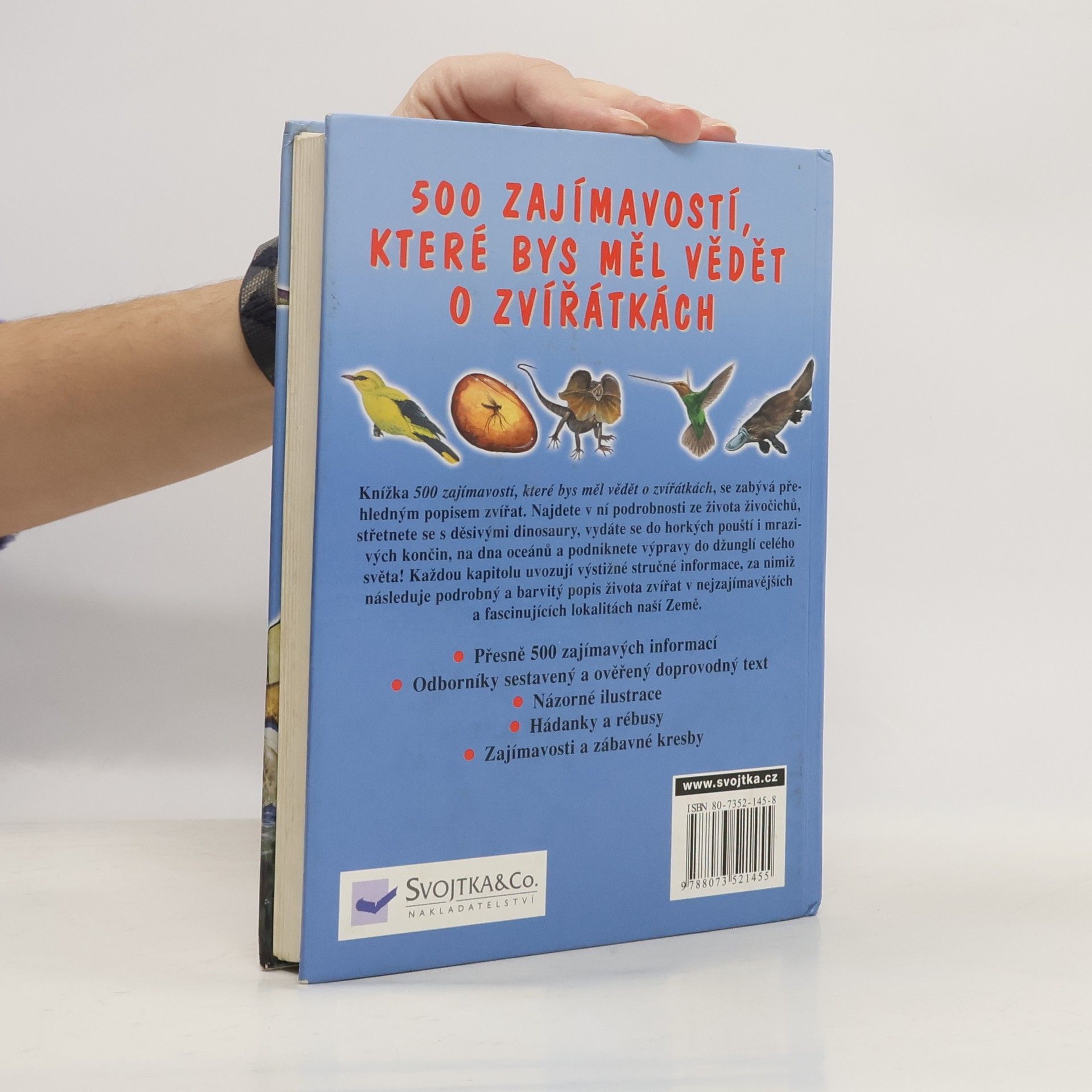 Ilustrovaná publikace pro děti zhruba od 9 let popisuje zajímavosti ze světa zvířat. Zajímavosti o dinousaurech, plazech, obojživelnících, hmyzu, savcích a ptácích. Každou kapitolu, která má své číslo, uvozují výstižné a stručné informace popisující život jednotlivých druhů. Zvláštností knihy jsou krátké kvízy, neuvěřitelné zajímavosti nebo návody, jak vyrobit jednoduché věci inspirované náměty z živočišné říše (např. masky, závěsné předměty, záložky apod.).