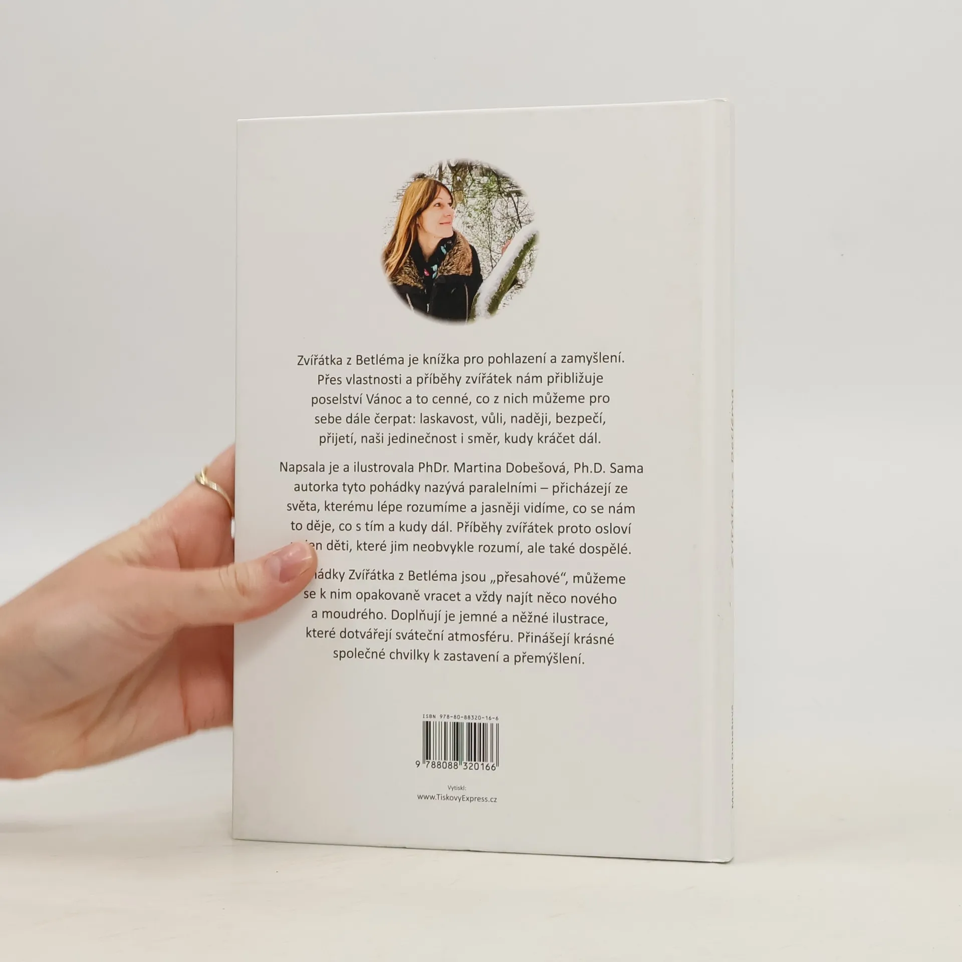 Zvířátka z Betléma je knížka pro pohlazení a zamyšlení. Přes vlastnosti a příběhy zvířátek nám přibližuje poselství Vánoc a to cenné, co z nich můžeme pro sebe dále čerpat: laskavost, vůli, naději, bezpečí, přijetí, naši jedinečnost i směr, kudy kráčet dál. Napsala je a ilustrovala PhDr. Martina Dobešová, Ph.D. Sama autorka tyto pohádky nazývá paralelními - přicházejí ze světa, kterému lépe rozumíme a jasněji vidíme, co se nám to děje, co s tím a kudy dál. Příběhy zvířátek proto osloví nejen děti, které jim neobvykle rozumí, ale také dospělé. Pohádky Zvířátka z Betléma jsou "přesahové", můžeme se k nim opakovaně vracet a vždy najít něco nového a moudrého. Doplňují je jemné a něžné ilustrace, které dotvářejí sváteční atmosféru. Přinášejí krásné společné chvilky k zastavení a přemýšlení.