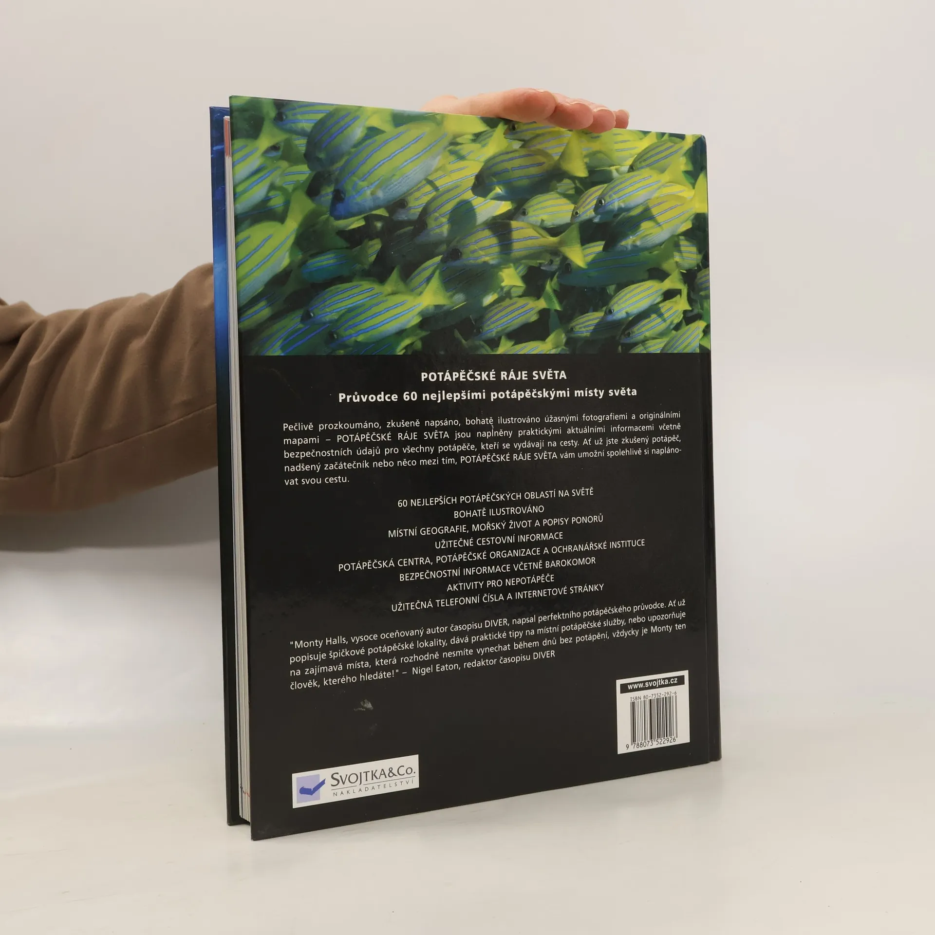 Tato kniha je obsáhlým průvodcem šedesáti nejlepšími potápěčskými místy světa. U každé oblasti přináší informace o viditelnosti, teplotě vody, možnostech příjezdu na místo či vízových požadavcích. Jsou tu i podrobnosti o místopisu, podmořském životě v celé oblasti a podrobné popisy vybraných potápěčských lokalit. Každé z popisovaných míst je označeno podle obtížnosti a zakresleno na přehledné mapě okolí. Kniha je doplněna celou řadou nádherných snímků od profesionálních potápěčů.