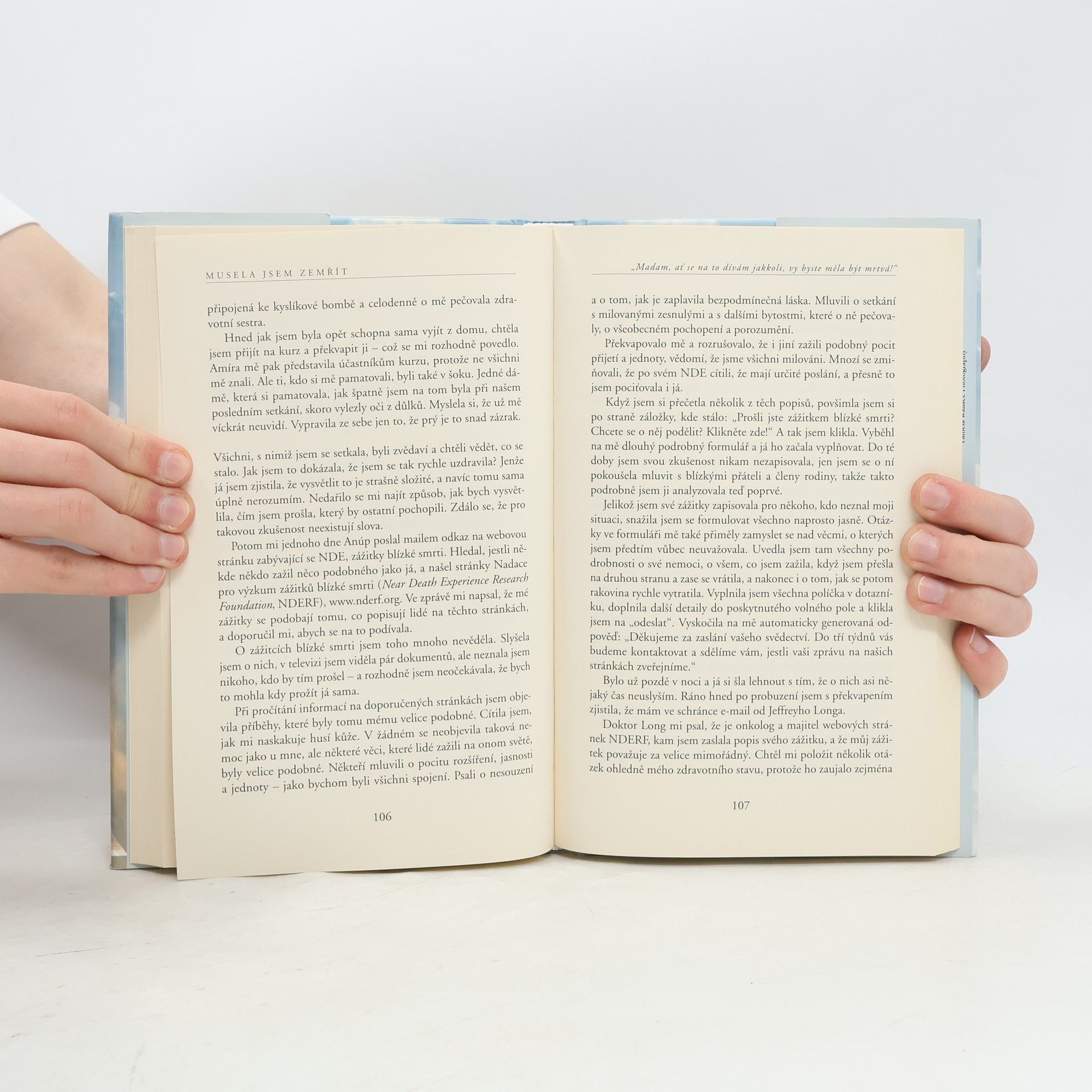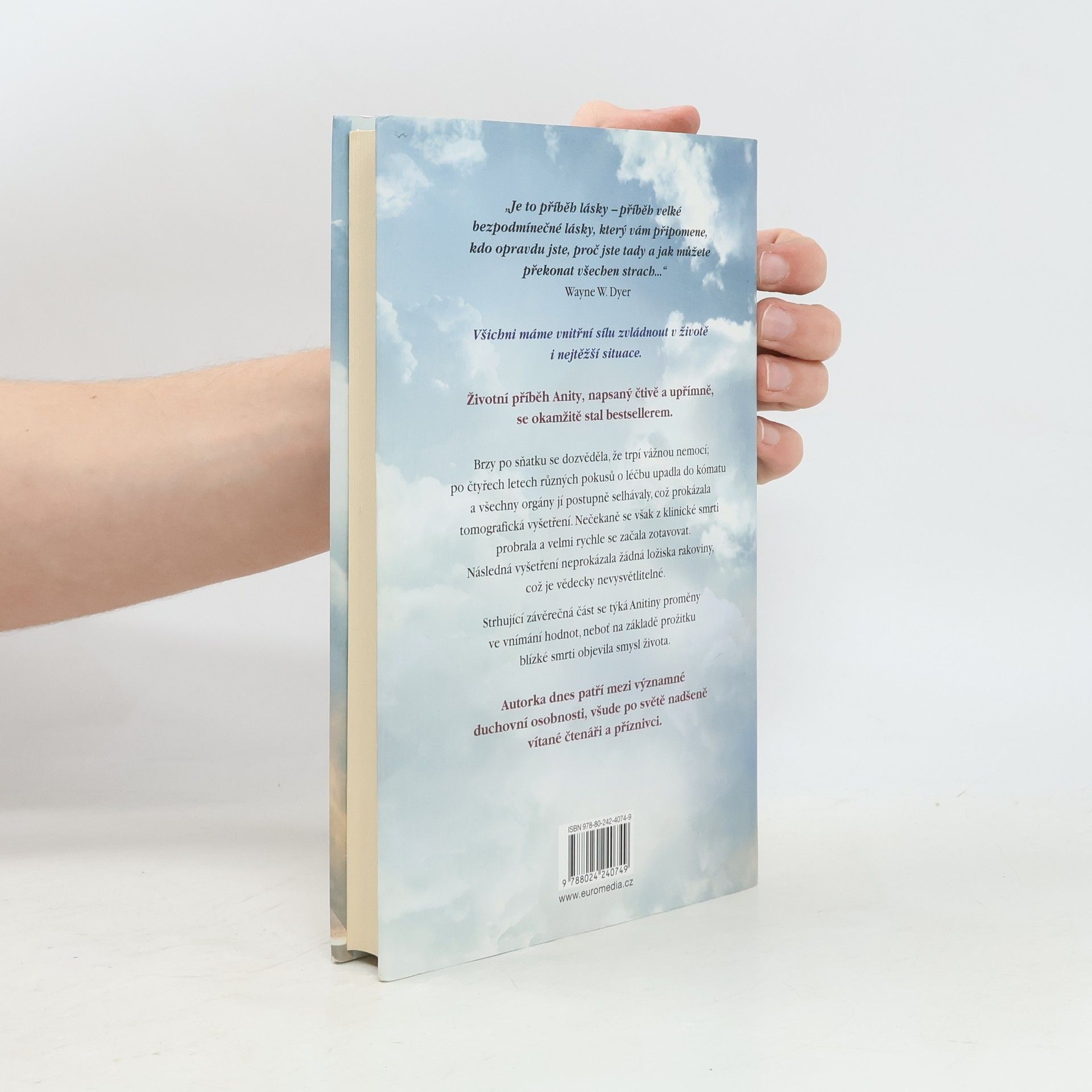 Životní příběh Anity, napsaný čtivě a upřímně, se okamžitě stal bestsellerem a autorka dnes patří mezi významné osobnosti, nadšeně vítané čtenáři po celém světě. Brzy po sňatku u ní diagnostikovali rakovinu, po čtyřech letech různých pokusů o léčbu upadla do kómatu a všechny orgány jí postupně selhávaly, což prokázala tomografická vyšetření. Nečekaně se však z klinické smrti probrala a velmi rychle se začala zotavovat. Následná vyšetření neprokázala žádná ložiska rakoviny, což je zcela neuvěřitelné a vědecky nevysvětlitelné. Strhující závěrečná část se týká autorčiny proměny ve vnímání hodnot, neboť na základě prožitku blízké smrti objevila smysl života. Anita Moorjani ve své inspirativní autobiografii líčí, jak jí po čtyřech letech boje se zákeřnou nemocí tělo vypovědělo službu. Dostala se do neobyčejného stavu zážitku blízké smrti a v něm si uvědomila svou vlastní hodnotu… i skutečnou příčinu své nemoci. Když nabyla vědomí, její stav se zlepšoval takovou rychlostí, že ji za několik týdnů bez jakýchkoli známek rakoviny propustili z nemocnice. Vyrůstala v tradiční hinduistické rodině uprostřed převážně čínské a britské společnosti a odmalička ji silně ovlivňovaly nejrůznější kulturní a náboženské zvyklosti.