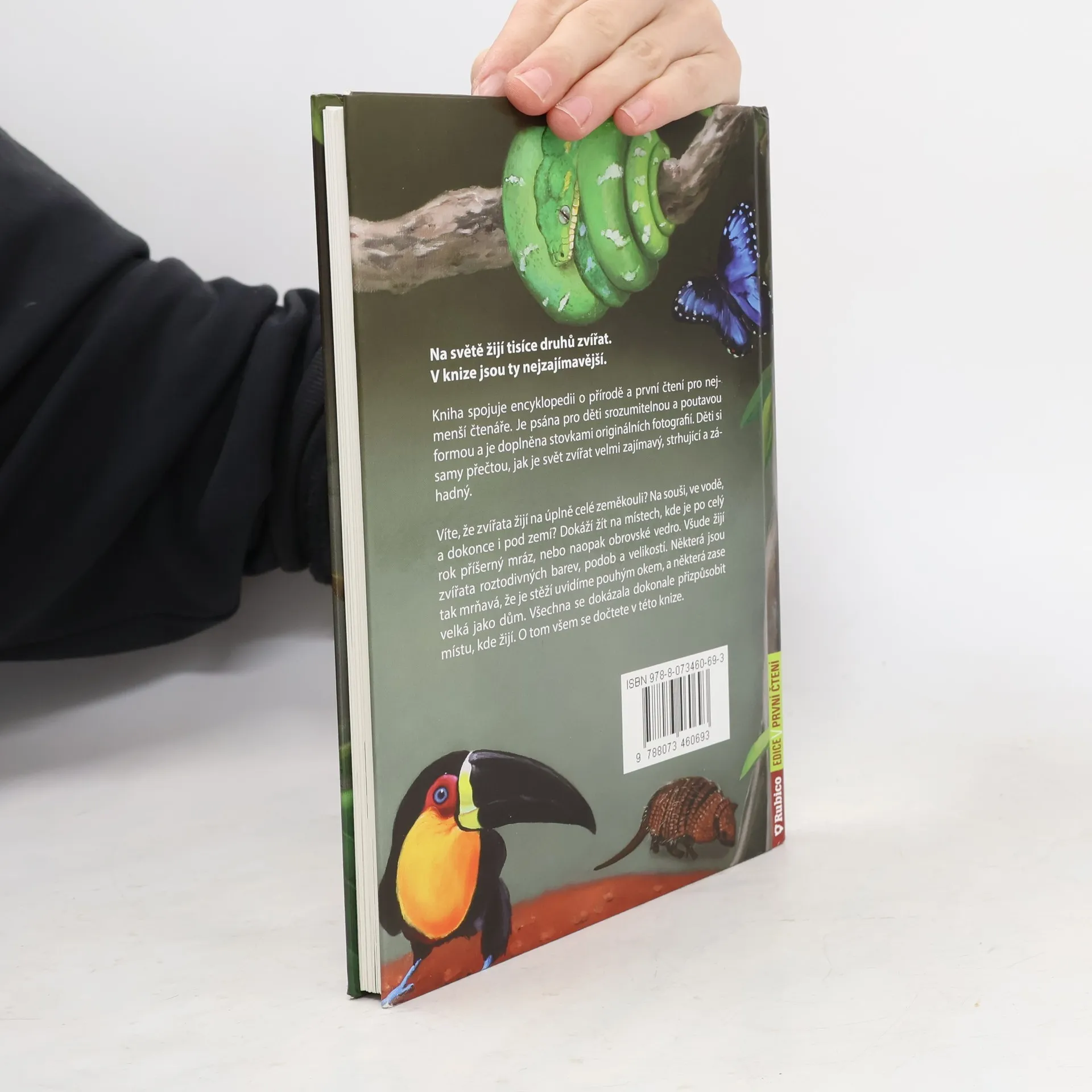 Víte, že zvířata žijí na úplně celé zeměkouli? Na souši, ve vodě, a dokonce i pod zemí? Dokáží žít na místech, kde je po celý rok příšerný mráz, nebo naopak obrovské vedro. Všude žijí zvířata roztodivných barev, podob a velikostí. Některá jsou tak mrňavá, že je stěží uvidíme pouhým okem, a některá zase velká jako dům. Všechna se dokázala dokonale přizpůsobit místu, kde žijí. O tom všem se dočtete v této knize. Kniha spojuje encyklopedii o přírodě a první čtení pro nejmenší čtenáře. Je psána pro děti srozumitelnou a poutavou formou a je doplněna stovkami originálních fotografií. Děti si samy přečtou, jak je svět zvířat velmi zajímavý, strhující a záhadný. Jednoduchý text je psán velkým písmem, slova nejsou rozdělena na dva řádky.