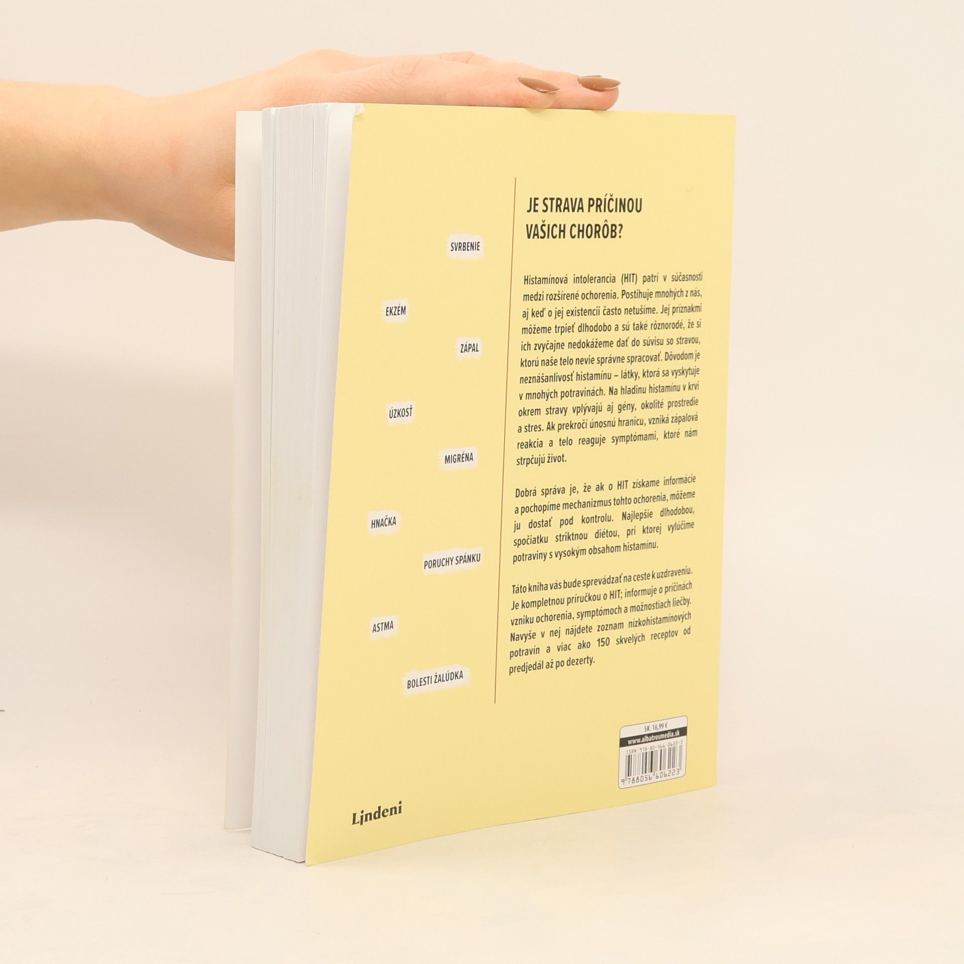 Histamínová intolerancia (HIT) patrí v súčasnosti medzi rozšírené ochorenia. Postihuje mnohých z nás, aj keď o jej existencii často netušíme. Jej príznakmi môžeme trpieť dlhodobo a sú také rôznorodé, že si ich zvyčajne nedokážeme dať do súvisu so stravou, ktorú naše telo nevie správne spracovať. Dôvodom je neznášanlivosť histamínu – látky, ktorá sa vyskytuje v mnohých potravinách. Na hladinu histamínu v krvi okrem stravy vplývajú aj gény, okolité prostredie a stres. Ak prekročí únosnú hranicu, vzniká zápalová reakcia a telo reaguje symptómami, ktoré nám strpčujú život. Dobrá správa je, že ak o HIT získame informácie a pochopíme mechanizmus tohto ochorenia, môžeme ju dostať pod kontrolu. Najlepšie dlhodobou, spočiatku striktnou diétou, pri ktorej vylúčime potraviny s vysokým obsahom histamínu. Táto kniha vás bude sprevádzať na ceste k uzdraveniu. Je kompletnou príručkou o HIT; informuje o príčinách vzniku ochorenia, symptómoch a možnostiach liečby. Navyše v nej nájdete zoznam nízkohistamínových potravín a viac ako 150 skvelých receptov od predjedál až po dezerty.