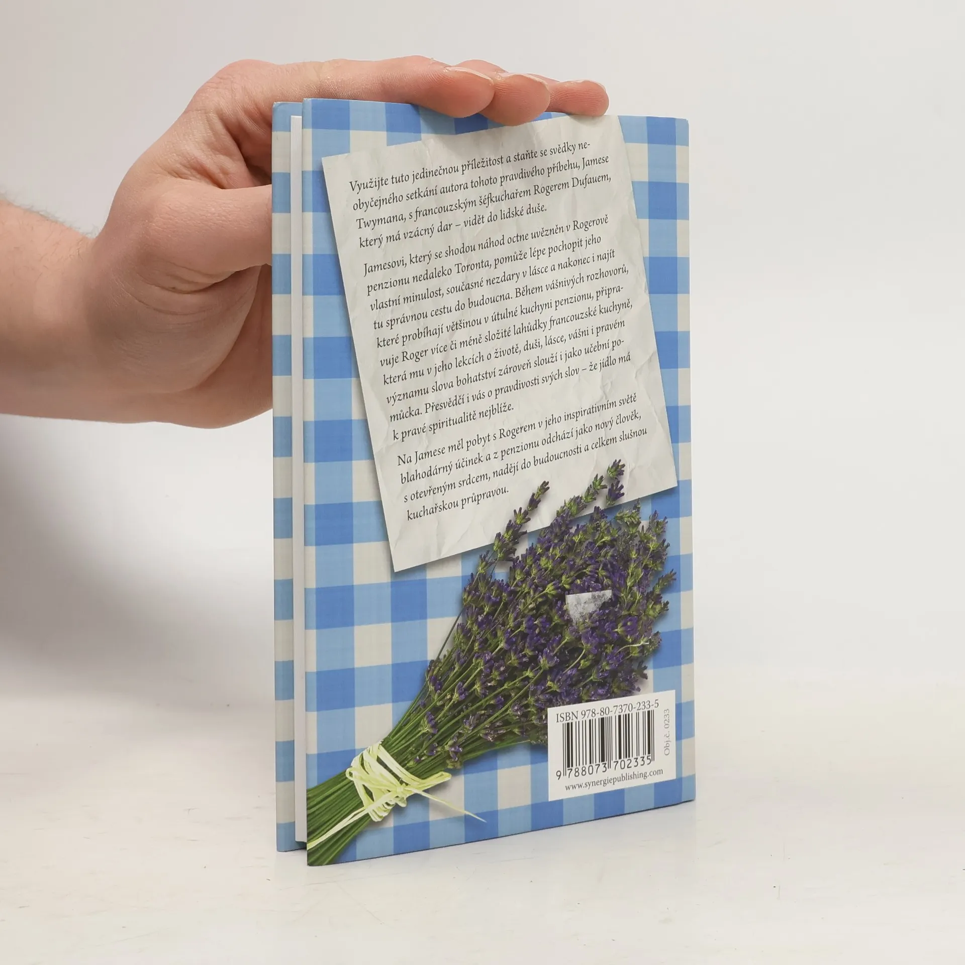Využijte tuto jedinečnou příležitost a staňte se svědkem neobyčejného setkání autora tohoto pravdivého příbehu, Jamese Twymana, s francouzským šéfkuchařem Rogerem Dufauem, který má vzácný dar - vidět do lidské duše. Jamesovi, který se shodou náhod octne uvězněn v Rogerově penzionu nedaleko Toronta, pomůže lépe pochopit jeho vlastní minulost, současné nezdary v lásce a nakonec i najít tu správnou cestu do budoucna. Během vášnivých rozhovorů, které probíhají většinou v útulné kuchyni penzionu, připravuje Roger více či méně složité lahůdky francouzské kuchyně, která mu v jeho lekcích o životě, duši, lásce, vášni i pravém významu slova bohatství zároveň slouží i jako učební pomůcka. Přesvědčí i vás o pravdivosti svých slov - že jídlo má k pravé spiritualitě nejblíže.