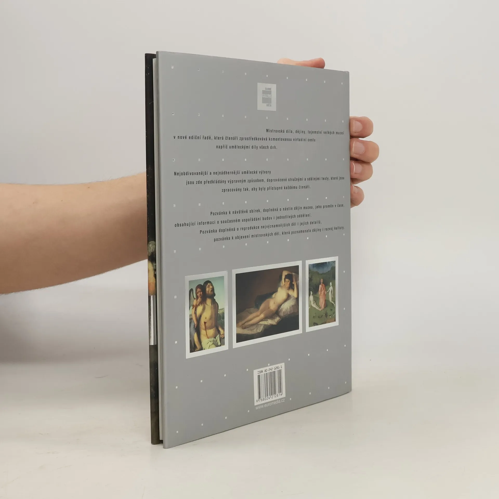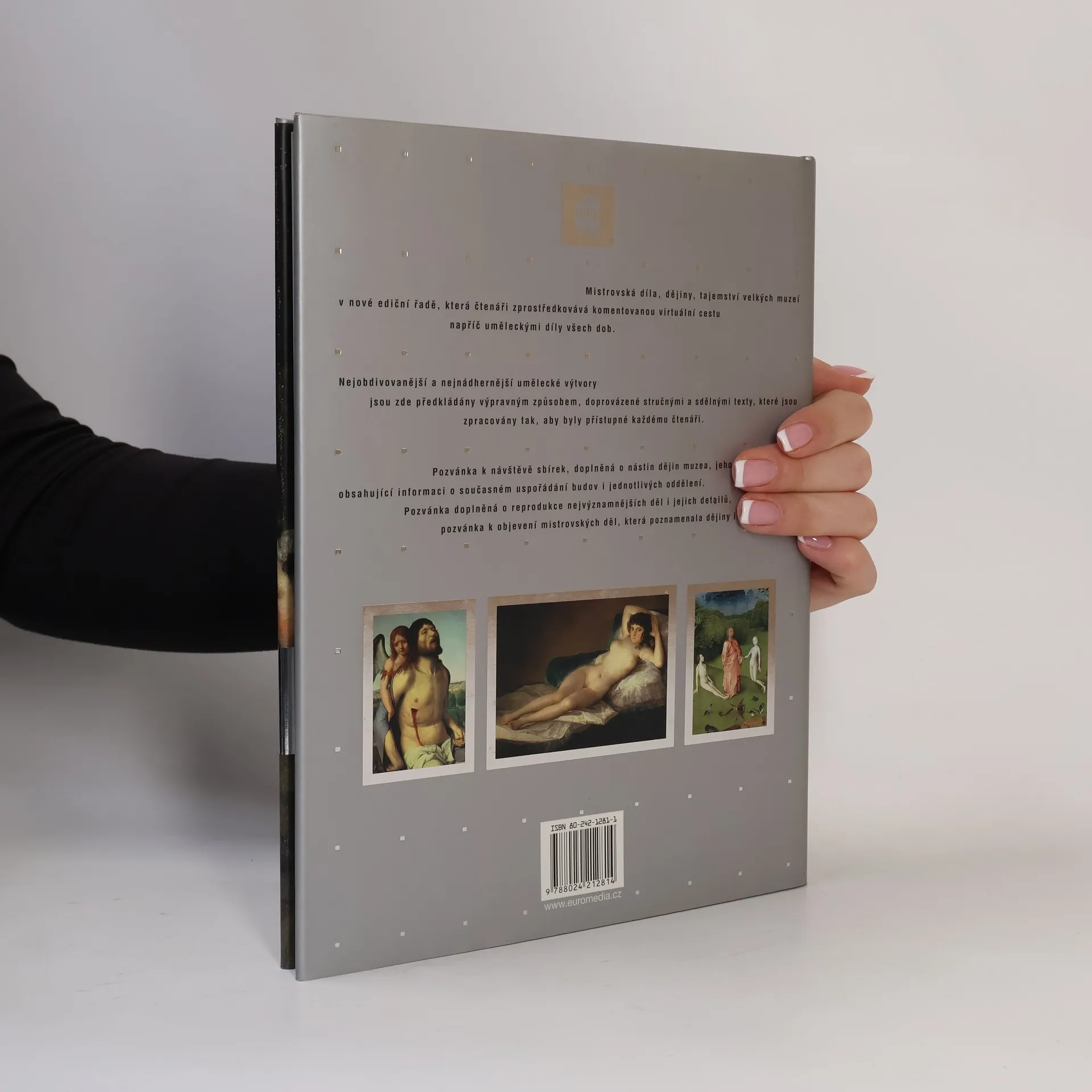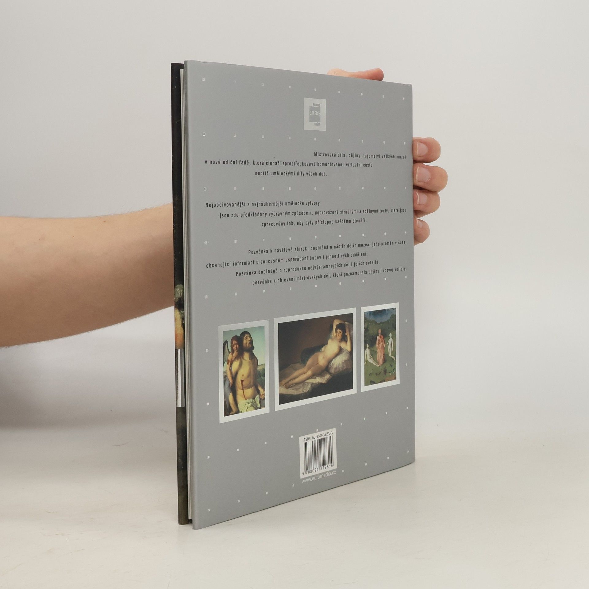 Mistrovská díla, dějiny, tajemství velkých muzeí v nové a původní ediční řadě, která čtenáři zprostředkovává komentovanou, virtuální cestu napříč uměleckými díly všech dob. Nejobdivovanější a nejnádhernější umělecké výtvory jsou zde předkládány výpravným způsobem, doprovázené stručnými a sdělnými texty, které jsou zpracovány tak, aby byly přístupné každému čtenáři. Pozvánka k návštěvě sbírek, doplněná o nástin dějin muzea, jeho proměn v čase, obsahující informaci o současném uspořádání budov i jednotlivých oddělení. Pozvánka doplněná o reprodukce nejvýznamnějších děl i jejich detailů, pozvánka k objevení mistrovských děl, která poznamenala dějiny i rozvoj kultury.... celý text