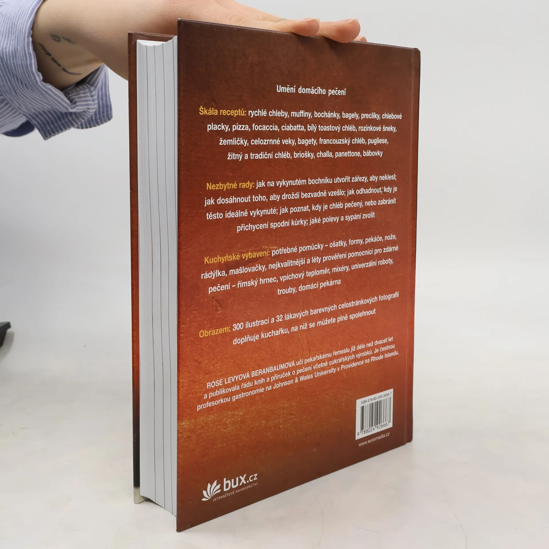 Již podruhé vychází kompletní „učebnice“ domácího pečení. Kromě klasického chleba nebo ciabatty si připravíte muffiny, challu, pizzu, vícezrnné chleby, žemle, bagely nebo briošky. U každého receptu autorka srozumitelně vysvětlila taje technologie a připojila finesy profesionálů. Nechybějí ani rady, které vyřeší všechny problémy: jak na dokonale vykynutém bochníku utvořit zářezy tak, aby neklesl. Jak odhadnout, kdy je těsto ideálně vykynuté. Jak poznat, kdy je chléb pečený, nebo jak zabránit přichycení spodní kůrky.