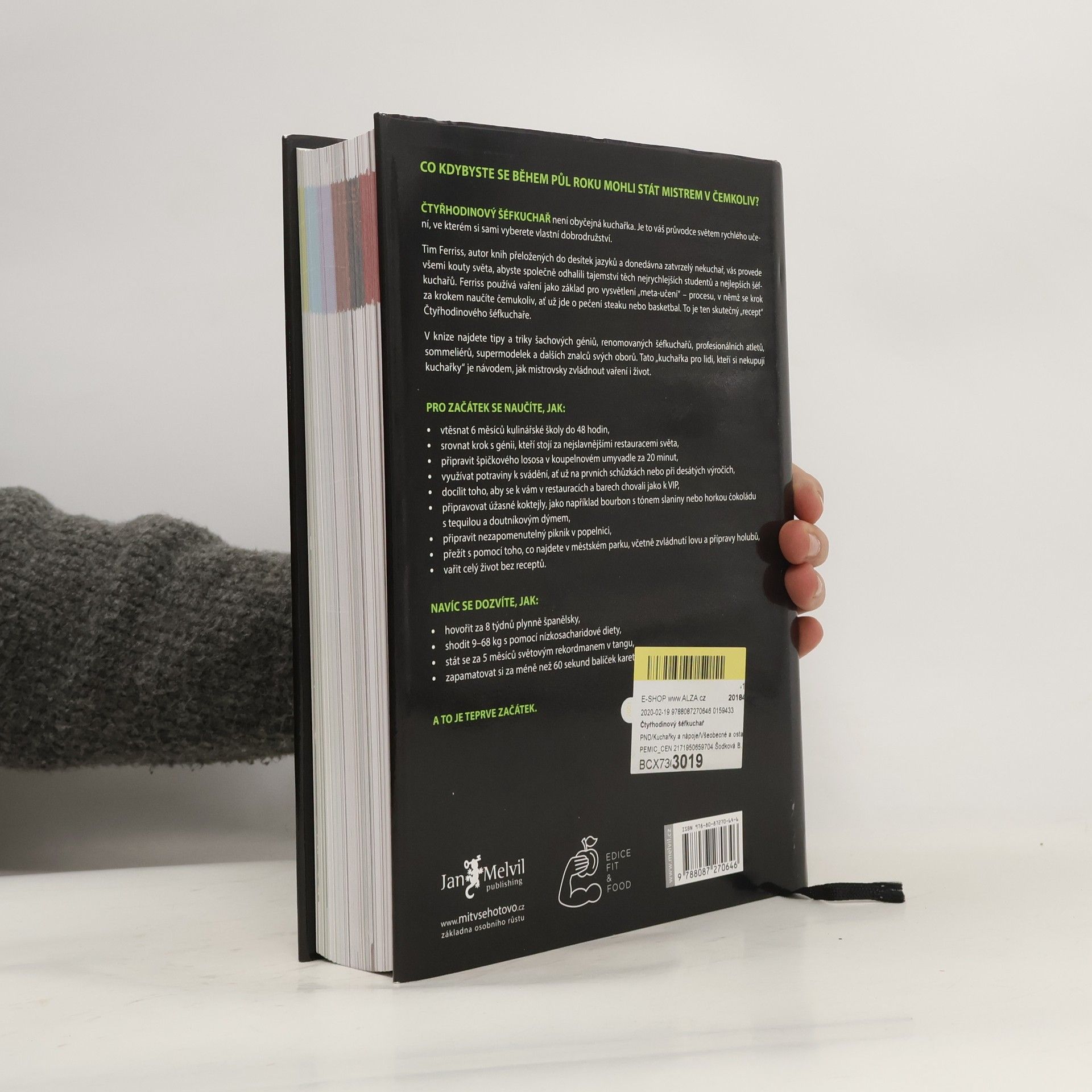 Timothy Ferriss přichází se svou dlouho připravovanou a napjatě očekávanou kuchařkou pro ty, kteří si kuchařky nikdy nekupují. Jeho přímočará cesta k cíli, známá již z předchozích bestsellerů Čtyřhodinový pracovní týden a Čtyřhodinové tělo vede v této vynalézavé knize přes všechny apekty života. Protože jak říká Tim, pokud se chcete naučit vařit, musíte se nejprve naučit učit se. Jakmile umíte tohle, můžete se naučit vařit, mluvit cizí řečí, hrát baketball, přežít v divočině… prostě stát se světovou třídou, v čem budete chtít. S Timem v roli šéfkuchaře projdete školou vaření, v níž se s každým receptem naučíte určitou dovednost, kterou následně využijete v dalším receptu. Množství tipů a triků z vás udělá vládce kuchyně, ale Ferriss, jak už má ve zvyku, se neomezuje jen na vaření doma. V části o divočině si uloví večeři, ve vědecké části pochopí molekulární kuchyni…