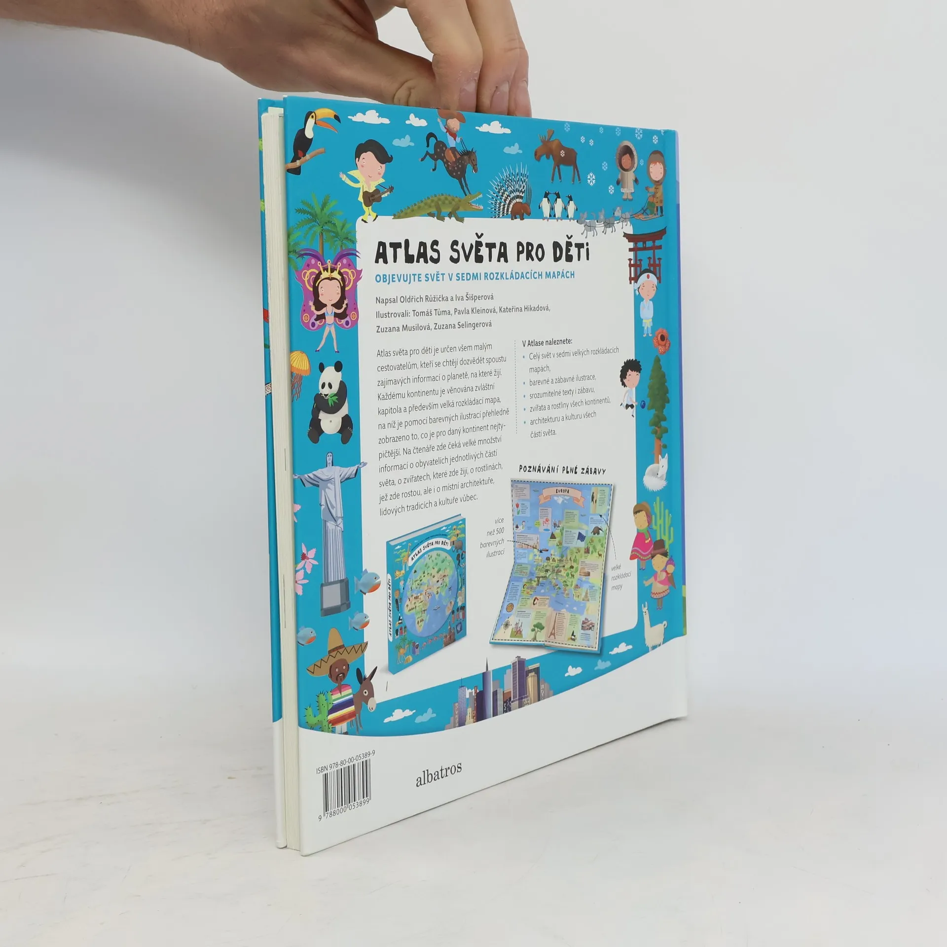 Atlas světa pro děti je určen všem malým cestovatelům, kteří se chtějí dozvědět spoustu zajímavých informací o planetě, na které žijí. Každému kontinentu je věnována zvláštní kapitola a především velká rozkládací mapa, na níž je pomoci barevných ilustrací přehledně zobrazeno to, co je pro daný kontinent nejtypičtější. Na čtenáře zde čeká velké množství informací o obyvatelích jednotlivých částí světa, o zvířatech, které zde žijí, o rostlinách, jež zde rostou, ale i o místní architektuře, lidových tradicích a kultuře vůbec. V Atlase naleznete celý svět v sedmi velkých rozkládacích mapách, patnáct vložených sešitků plných dalších podrobností a informací, barevné a zábavné ilustrace, srozumitelné texty i zábavu, zvířata a rostliny všech kontinentů, architekturu a kulturu všech částí světa.
