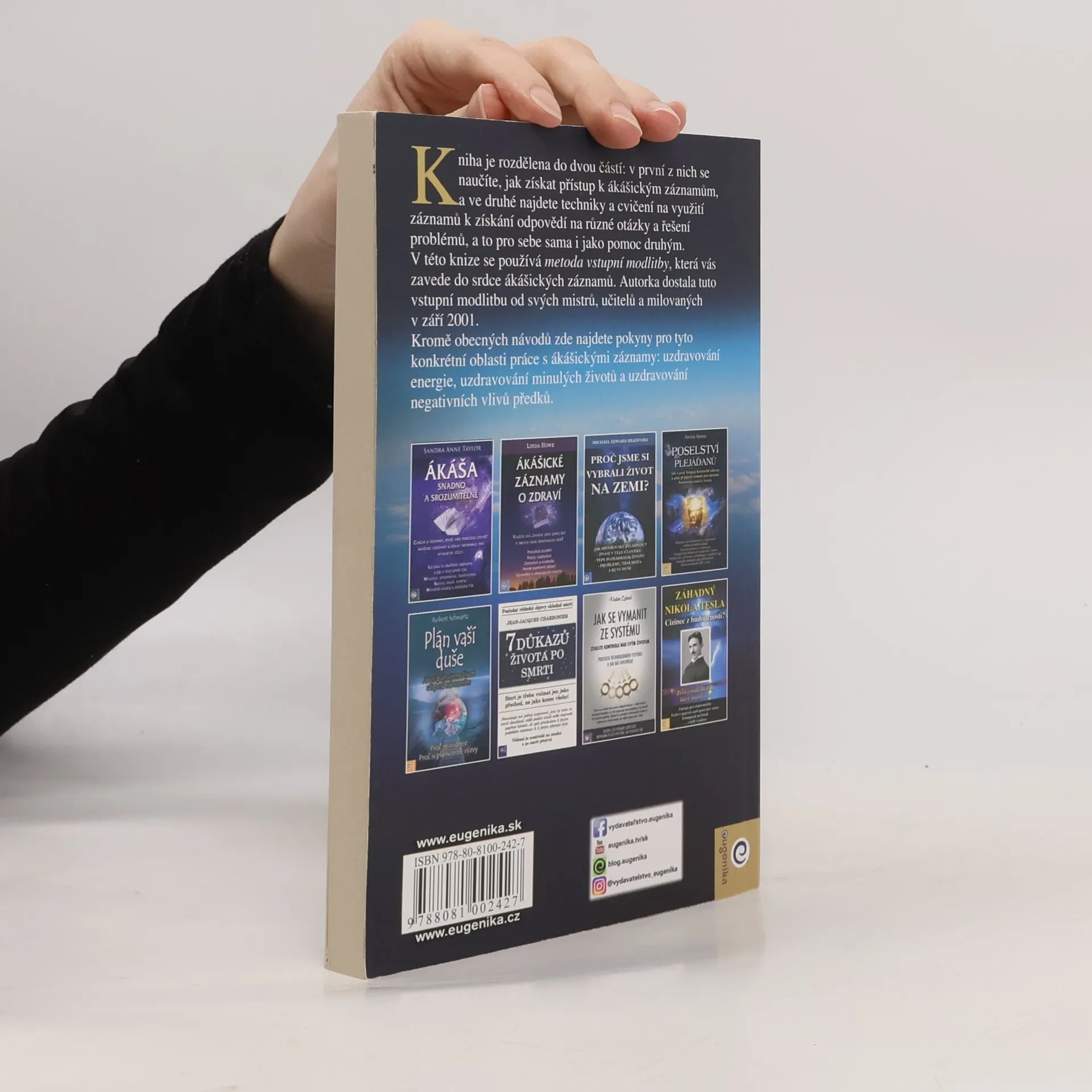 Kniha je rozdělena do dvou částí: v první z nich se naučíte, jak získat přístup k ákášickým záznamům, a ve druhé najdete techniky a cvičení na využití záznamů k získání odpovědí na různé otázky a řešení problémů, a to pro sebe sama i jako pomoc druhým.V této knize se používá metoda vstupní modlitby, která vás zavede do srdce ákášických záznamů. Autorka dostala tuto vstupní modlitbu od svých mistrů, učitelů a milovaných v září 2001. Kromě obecných návodů zde najdete pokyny pro tyto konkrétní oblasti práce s ákášickými záznamy: uzdravování energie, uzdravování minulých životů a uzdravování negativních vlivů předků.