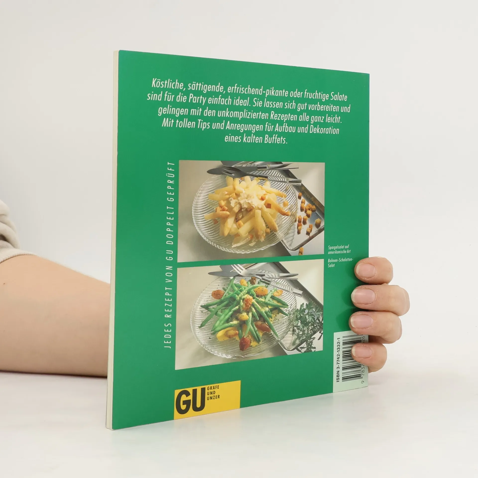 Rezept-Ideen für Salate, die sich gut für Parties und Büffets eignen; reich illustriert.