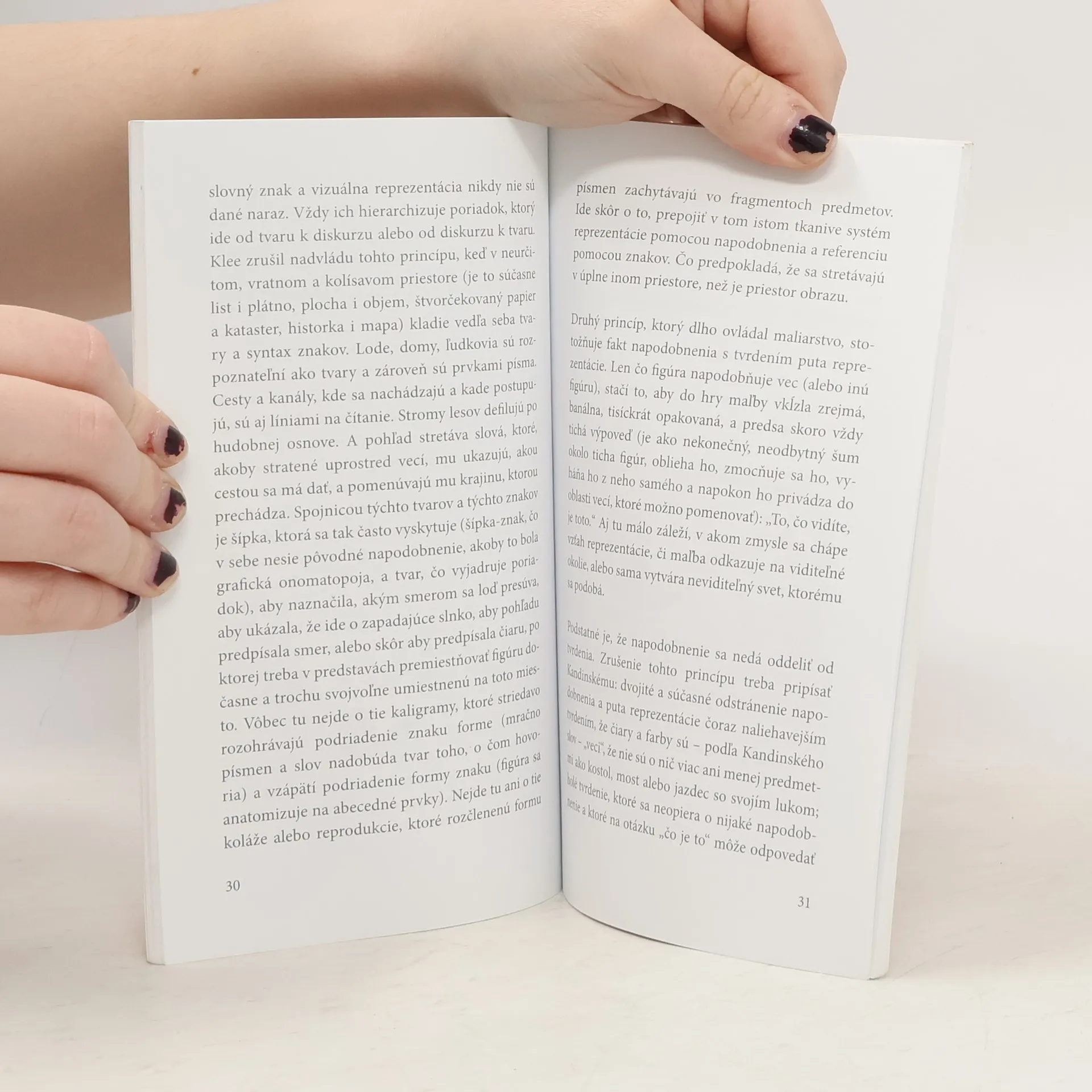 V Magrittovom obraze, kde je fajka a pod ňou nápis Toto nie je fajka, našiel autor knižky spochybnenie princípu napodobňovania, ktorý dlho vládol v západnom maliarstve a nielen tam. V Magrittovom maliarstve sa podľa Foucaulta dostáva do obehu obraz bez vonkajšieho vzoru, bez imitácie niečoho daného. Takýto obraz Platón nazval simulakrom a jeho tvorcov odsúdil ako výrobcov preludov. A práve pojem simulakra nám umožňuje chápať mnohé fenomény súčasnej vizuálnej kultúry. Kaligram je teda tautológia. Ale nie taká ako v rétorike. Rétorika ťaží z nadbytku reči; využíva možnosť dvakrát povedať to isté rozličnými slovami; profituje z nadmerného bohatstva, ktoré nám dovoľuje jedným a tým istým slovom povedať dve rozličné veci; podstatou rétoriky je alegória. Kaligram využíva tú vlastnosť písmen, že majú význam ako lineárne prvky, ktoré možno rozložiť v priestore, a zároveň ako znaky, ktoré treba rozvíjať v jednotnej reťazi zvukovej substancie. Znak, písmeno dovoľuje určiť slovo; čiara zasa dovoľuje stvárniť vec. Kaligram mieni teda hravo zotrieť najstaršie protiklady našej alfabetizovanej civilizácie: ukázať a pomenovať; stvárniť a povedať; reprodukovať a artikulovať; napodobniť a označiť; pozorovať a čítať.