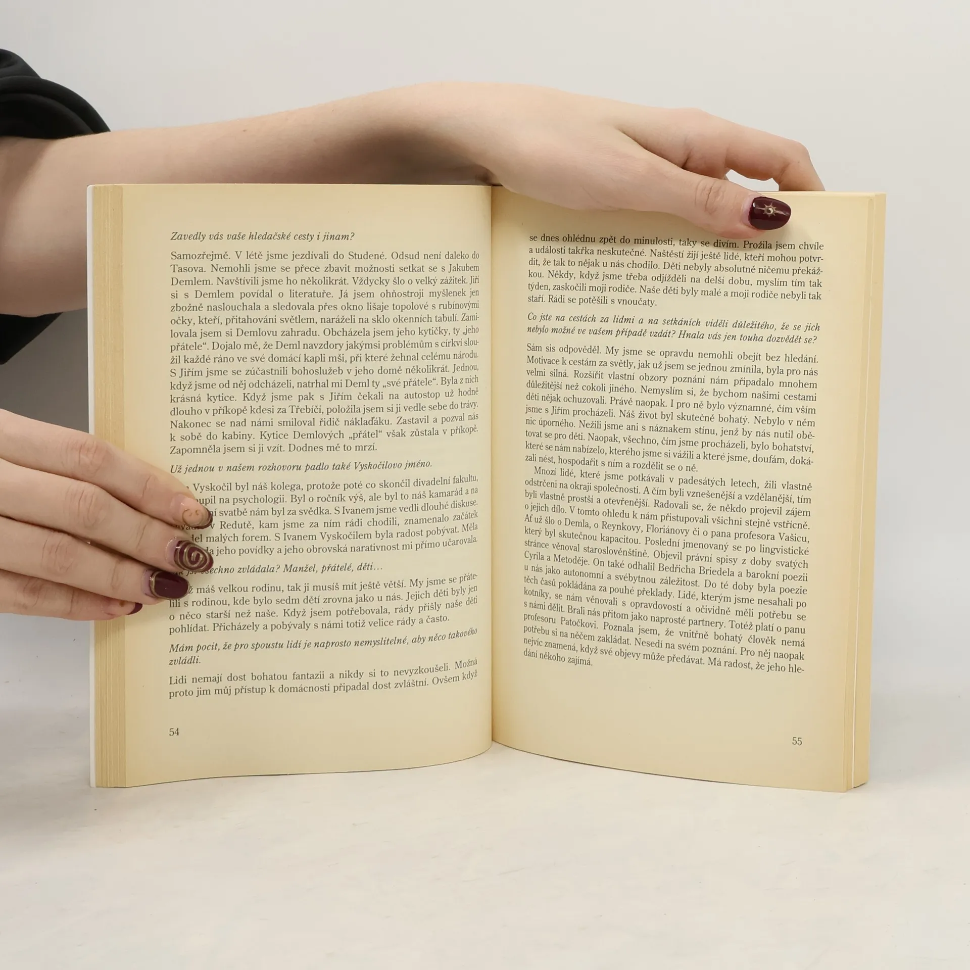 V rozhovorech zachycených publicistou a výtvarníkem Janem Bártou vzpomíná Dana Němcová na dobu, kterou prošla.Vnímá ji především jako cestu, na které se setkala a stále ještě setkává s různými lidmi. Jen některá setkání však může nazvat skutečně osudovými. Patří mezi ně setkání s Jiřím Němcem, které se proměnilo na dlouhá léta v jejich společnou cestu. Své putování po životní cestě si Dana Němcová vyzkoušela na sto způsobů. Od času dětství, prvních pádů a vzpomínek na válku provede čtenáře ve svém vyprávění přes dobu vysokoškolských studií až k roli manželky, matky, přítelkyně a také disidentky. Nezamlčuje, že její přijímání životních rolí bylo ovlivněno vírou a hledáním, jak sama říká, něčeho tajemného. Velmi skromně, jako by nechtěla ničím narušit křehkost a nedotknutelnost přátelství, se vyjadřuje o setkávání se známými osobnostmi kultury a politiky.